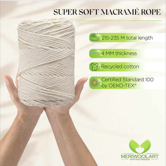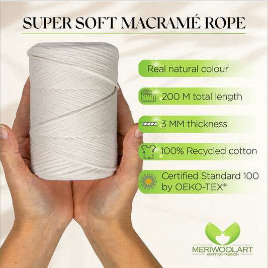 Passion for knitting inspires the rainbow of colours of natural wool and recycled cotton yarns for you to choose from. Here you will find macrame ropes, merino wool yarns, t-shirt yarns. We meet you where you are on your knitting, crocheting and macrame journey. MeriWoolArt is a premium yarns shop for knitters, macramers, and fiber artists. Let's cultivate together the crafts of macramé, arm knitting, knotting, crochet, craft, and home decor.