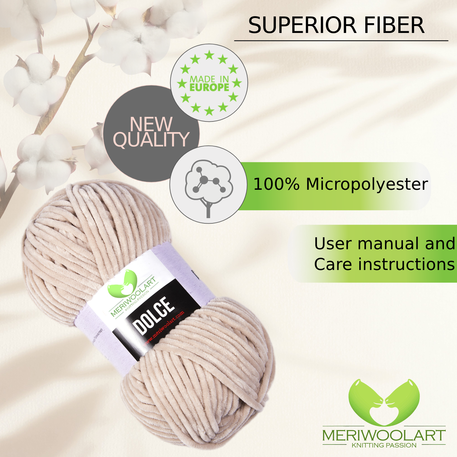 - Chenille yarns with 100% polyester fiber. The thick Velvet yarn have a velvety feel due to their micropolyester content.