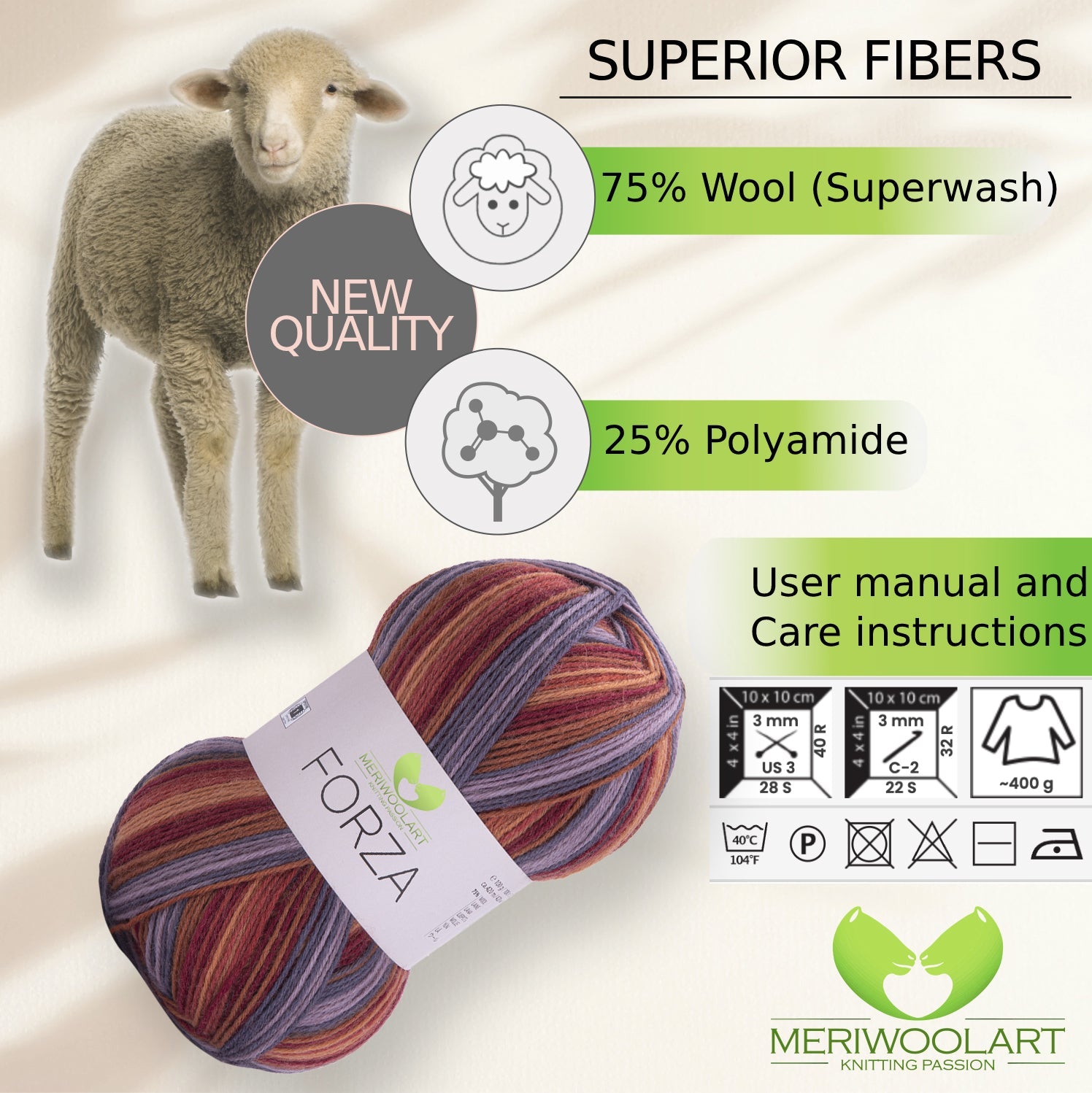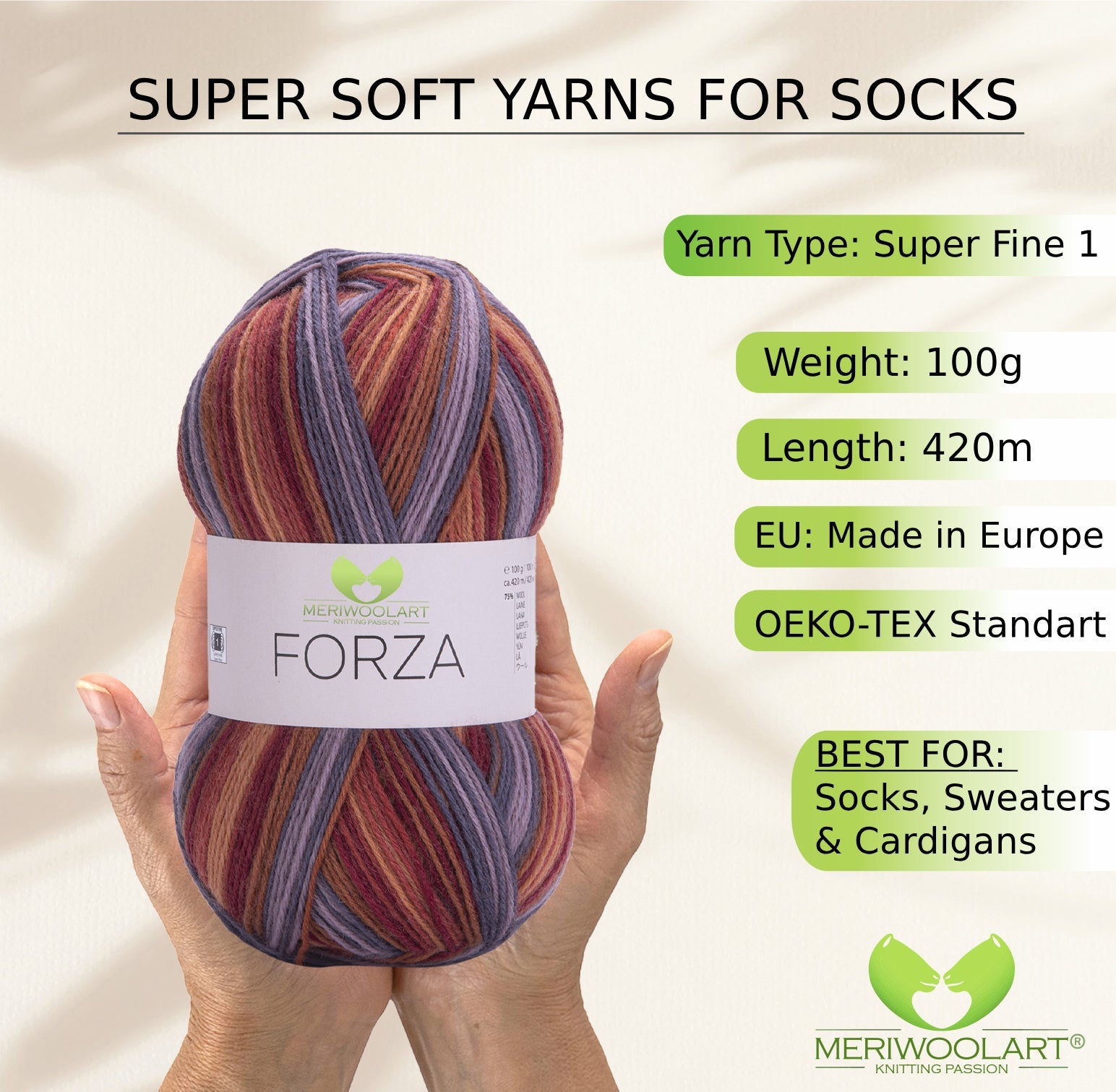 Discover MeriWoolArt® Sock Yarn 4-Ply – 100g Merino Wool Yarn for Knitting & Crocheting, 75% Virgin Wool (Superwash), 25% Polyamide, 420m – Ideal for Socks for Men & Women, Sweaters & Cardigans