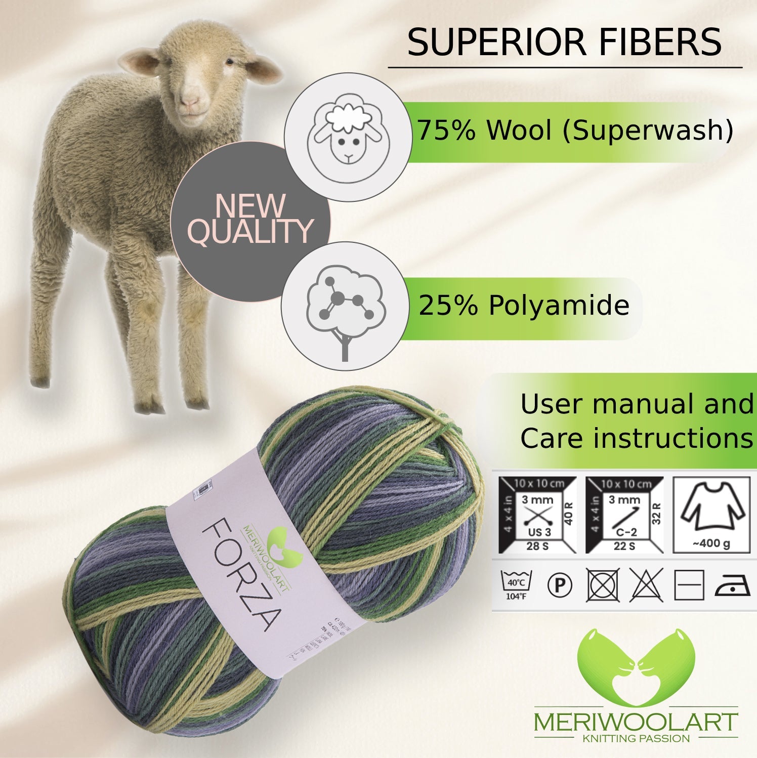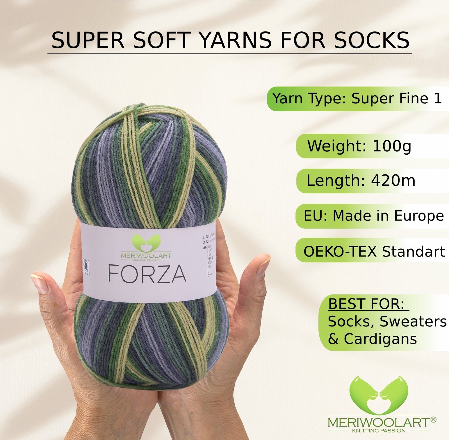 Discover MeriWoolArt® Sock Yarn 4-Ply – 100g Merino Wool Yarn for Knitting & Crocheting, 75% Virgin Wool (Superwash), 25% Polyamide, 420m – Ideal for Socks for Men & Women, Sweaters & Cardigans