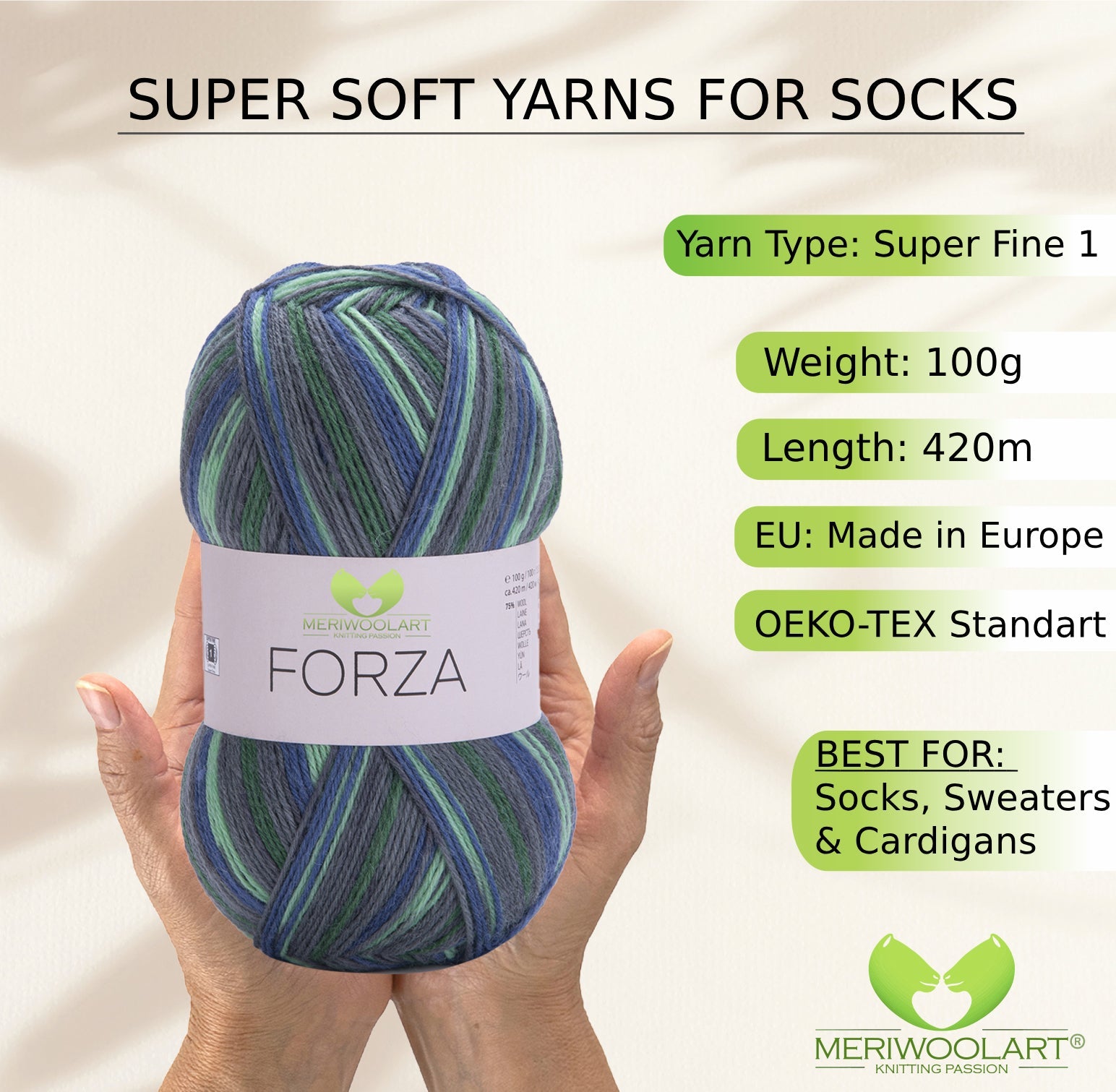 Discover MeriWoolArt® Sock Yarn 4-Ply – 100g Merino Wool Yarn for Knitting & Crocheting, 75% Virgin Wool (Superwash), 25% Polyamide, 420m – Ideal for Socks for Men & Women, Sweaters & Cardigans