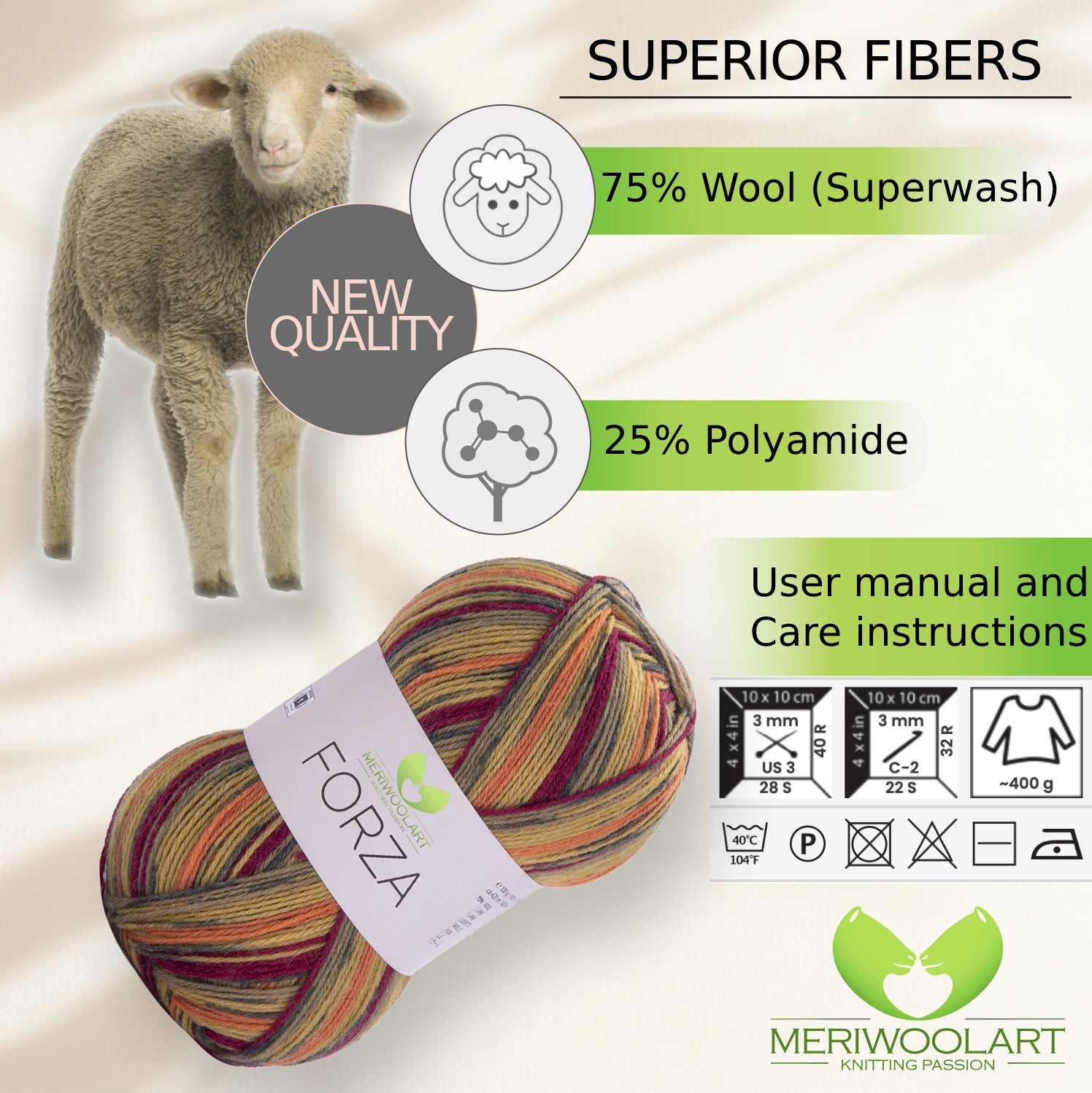 Discover MeriWoolArt® Sock Yarn 4-Ply – 100g Merino Wool Yarn for Knitting & Crocheting, 75% Virgin Wool (Superwash), 25% Polyamide, 420m – Ideal for Socks for Men & Women, Sweaters & Cardigans