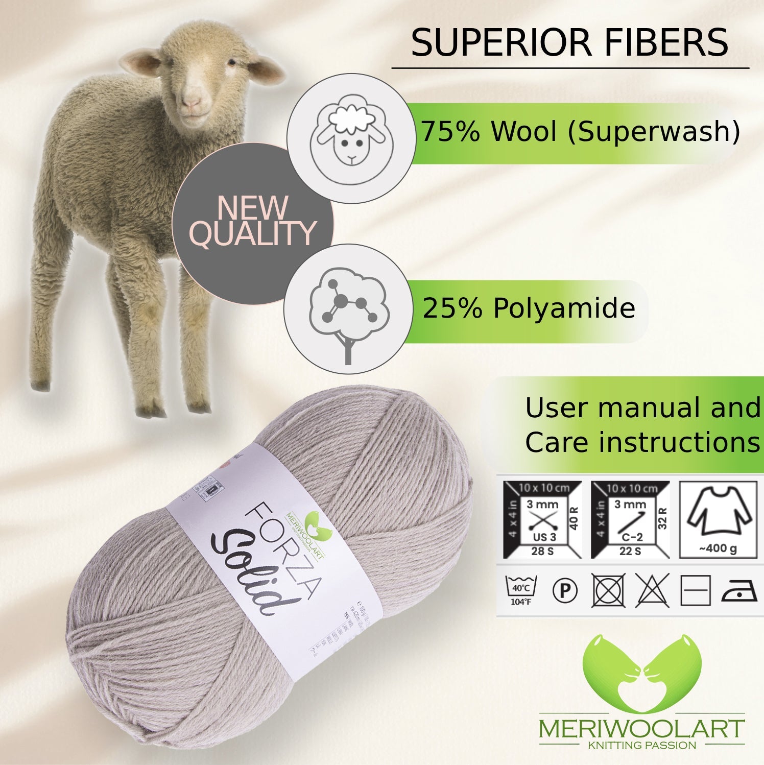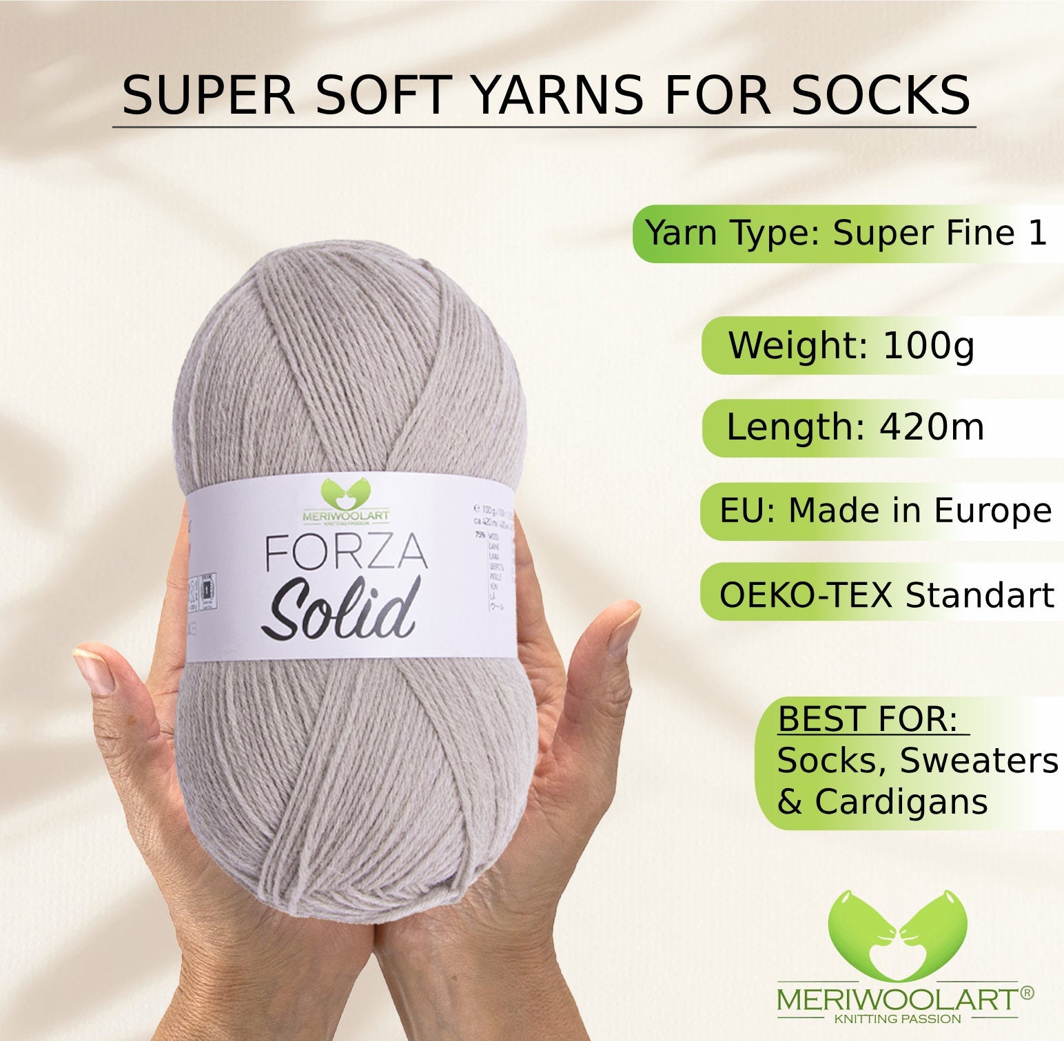 Discover MeriWoolArt® Sock Yarn 4-Ply – 100g Merino Wool Yarn for Knitting & Crocheting, 75% Virgin Wool (Superwash), 25% Polyamide, 420m – Ideal for Socks for Men & Women, Sweaters & Cardigans