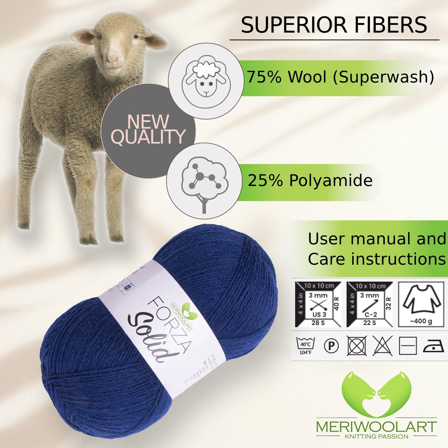 Discover MeriWoolArt® Sock Yarn 4-Ply – 100g Merino Wool Yarn for Knitting & Crocheting, 75% Virgin Wool (Superwash), 25% Polyamide, 420m – Ideal for Socks for Men & Women, Sweaters & Cardigans