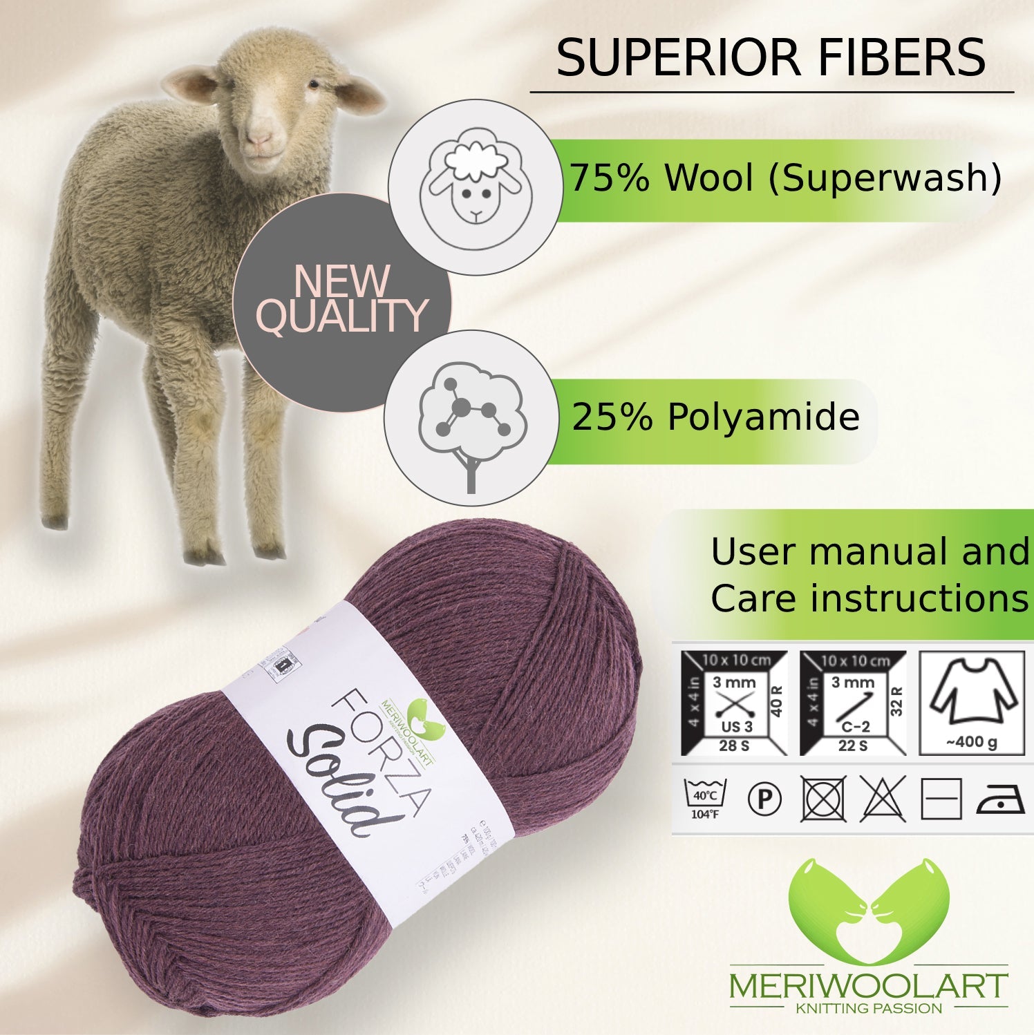 Discover MeriWoolArt® Sock Yarn 4-Ply – 100g Merino Wool Yarn for Knitting & Crocheting, 75% Virgin Wool (Superwash), 25% Polyamide, 420m – Ideal for Socks for Men & Women, Sweaters & Cardigans