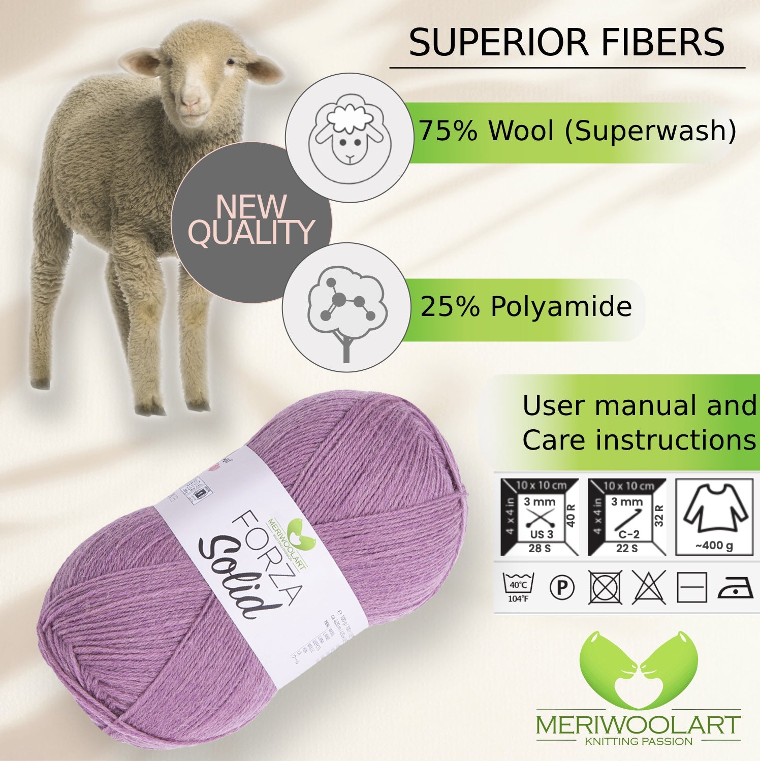 FORZA SOLID Lilac-4637 WOOL SOCK YARN 100g 420m