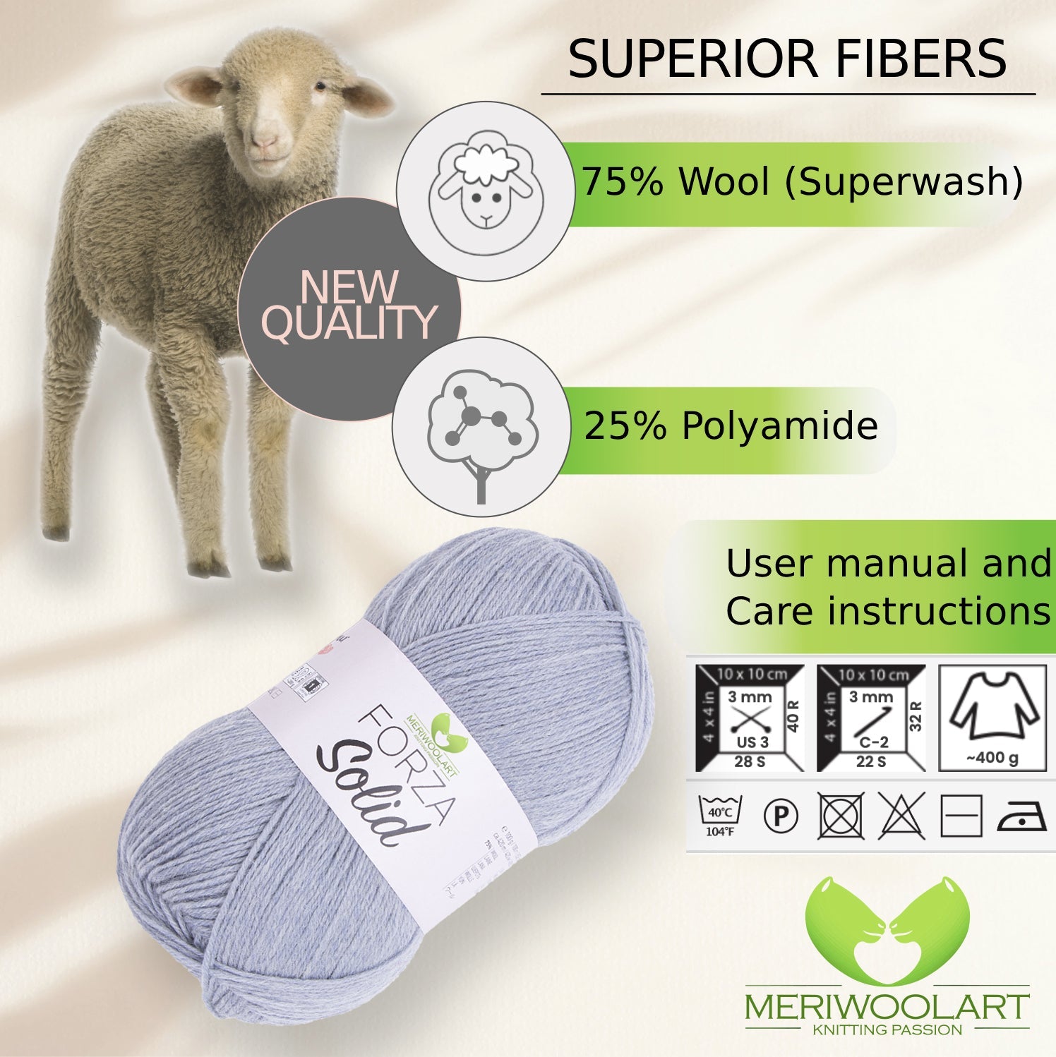 Discover MeriWoolArt® Sock Yarn 4-Ply – 100g Merino Wool Yarn for Knitting & Crocheting, 75% Virgin Wool (Superwash), 25% Polyamide, 420m – Ideal for Socks for Men & Women, Sweaters & Cardigans