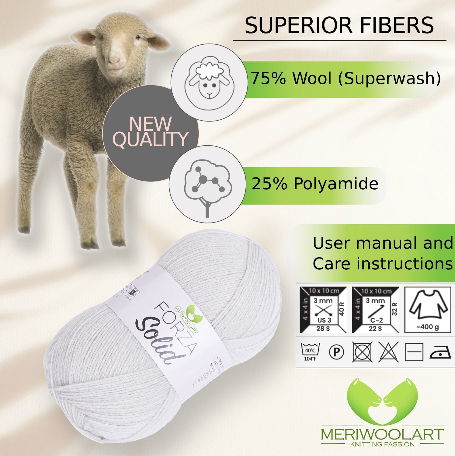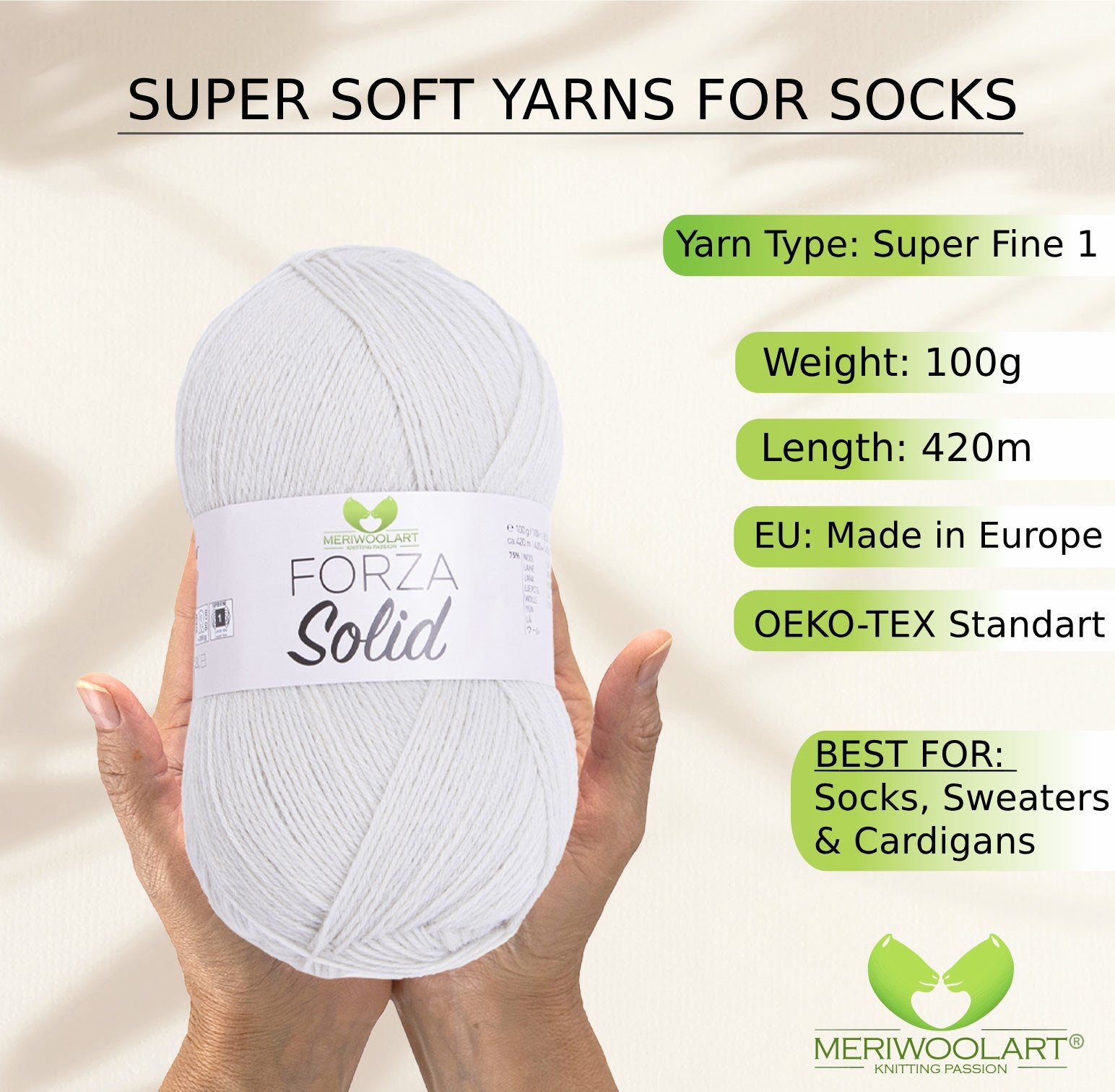 Discover MeriWoolArt® Sock Yarn 4-Ply – 100g Merino Wool Yarn for Knitting & Crocheting, 75% Virgin Wool (Superwash), 25% Polyamide, 420m – Ideal for Socks for Men & Women, Sweaters & Cardigans