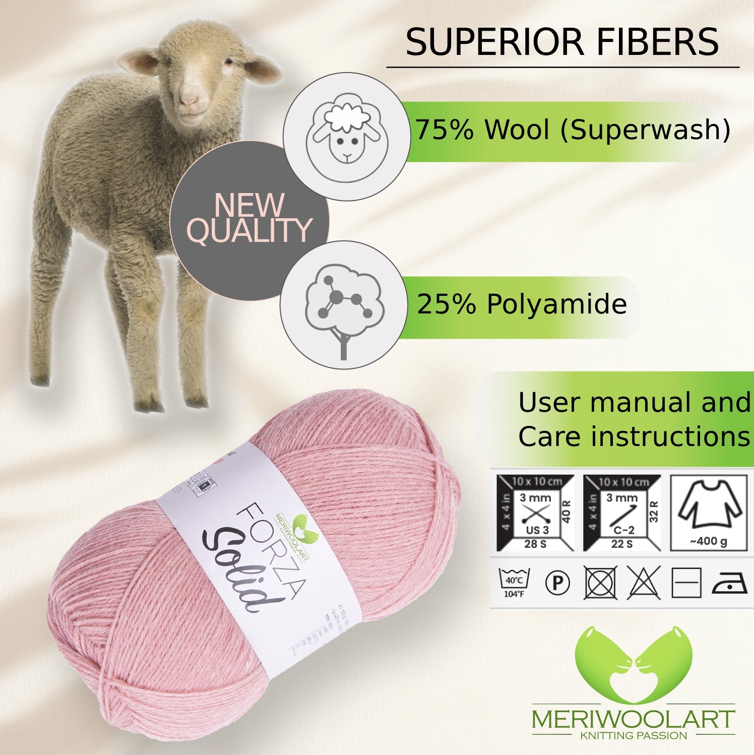 Discover MeriWoolArt® Sock Yarn 4-Ply – 100g Merino Wool Yarn for Knitting & Crocheting, 75% Virgin Wool (Superwash), 25% Polyamide, 420m – Ideal for Socks for Men & Women, Sweaters & Cardigans