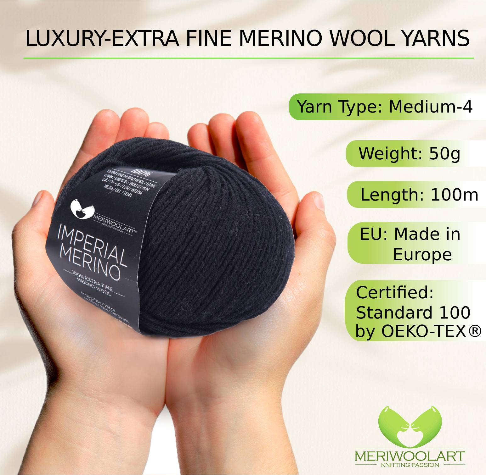 IMPERIAL Black MERINO WOOL YARNS 50g 125m