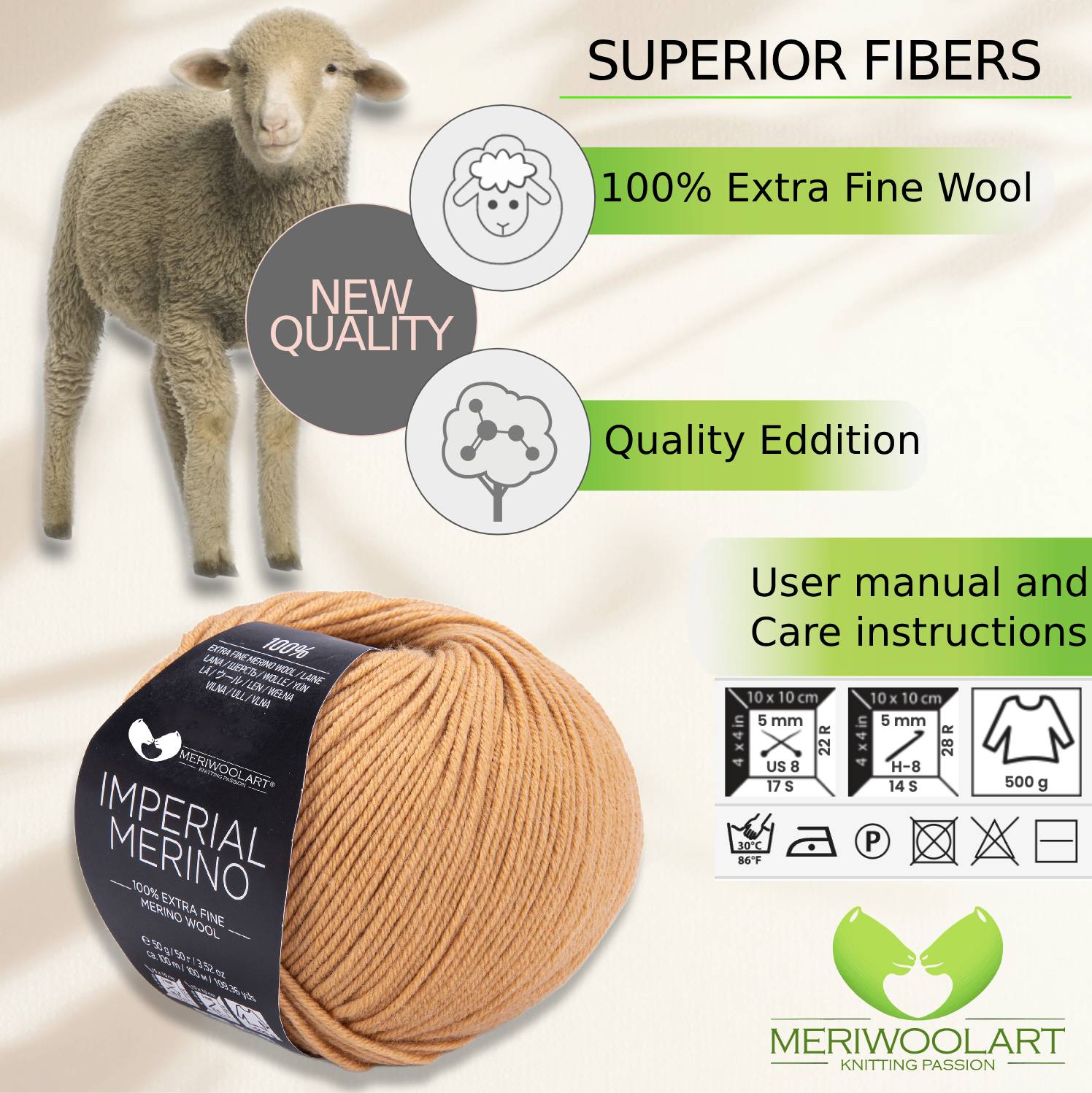 IMPERIAL Camel MERINO WOOL YARNS 50g 125m