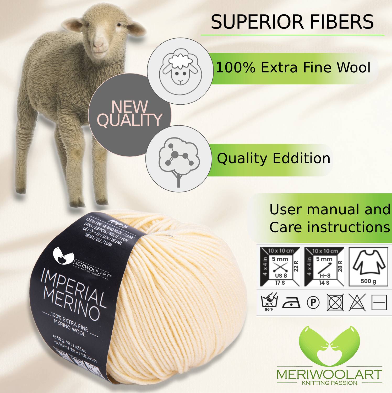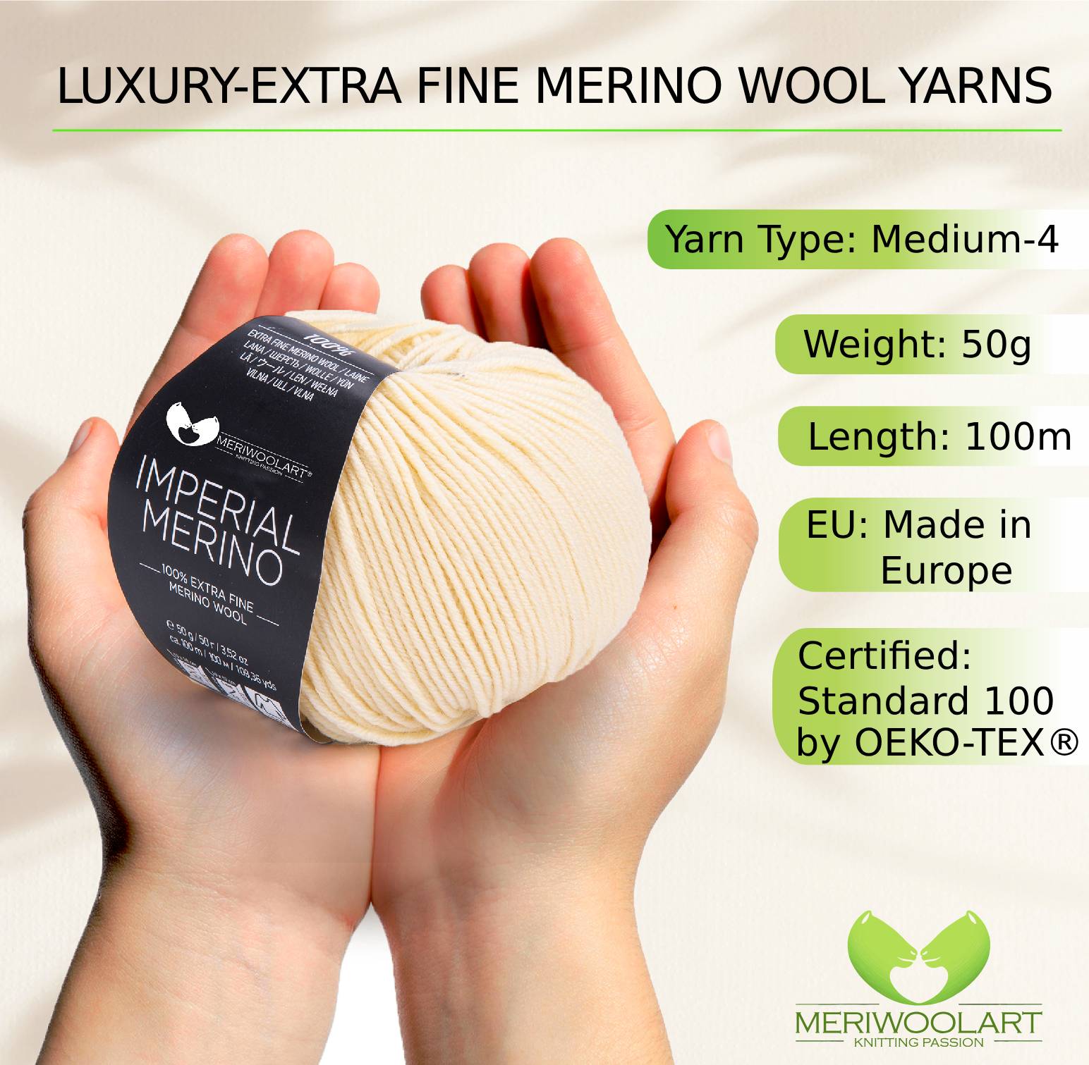 IMPERIAL Cream MERINO WOOL YARNS 50g 125m