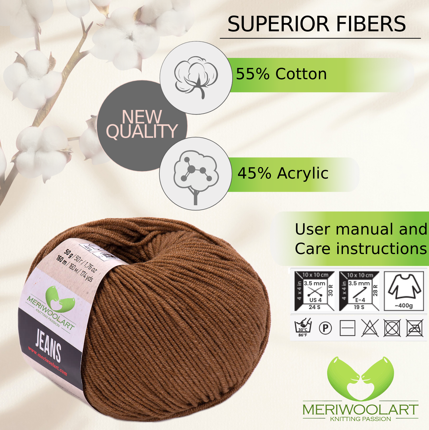 Experience the softness and versatility of MeriWoolArt® Natural Cotton Yarn, perfect for knitting, crocheting, and crafting baby clothes, blankets, and accessories.