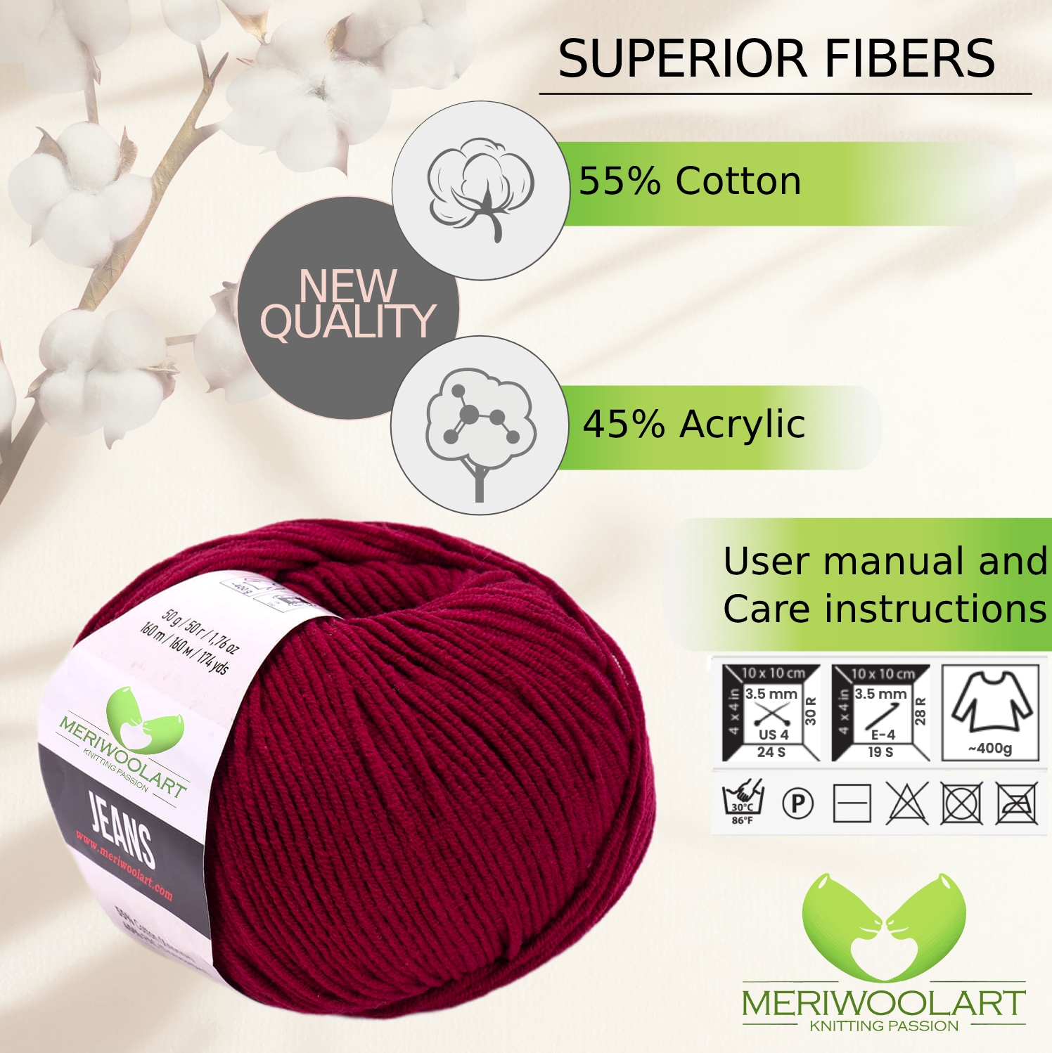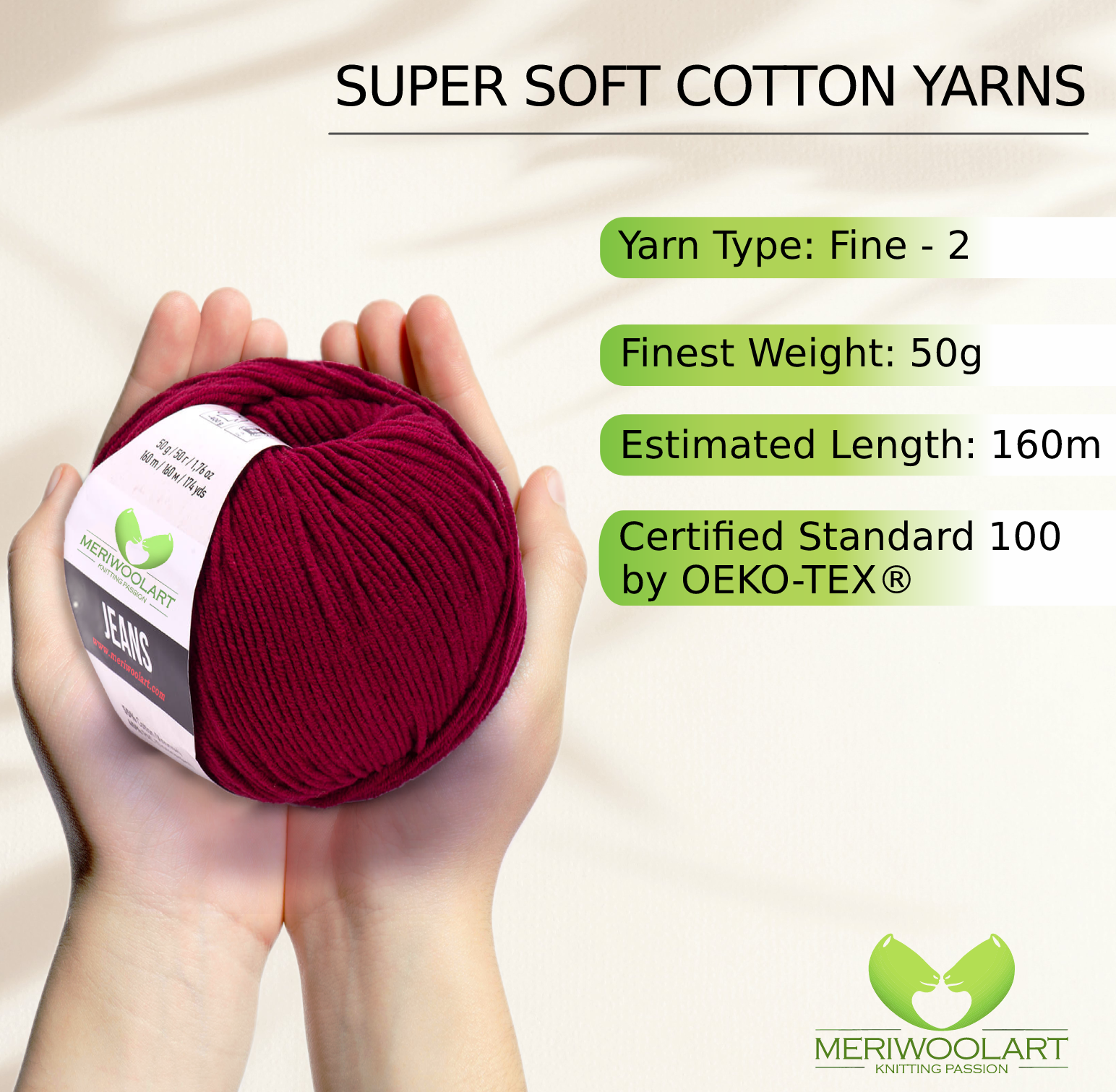 Experience the softness and versatility of MeriWoolArt® Natural Cotton Yarn, perfect for knitting, crocheting, and crafting baby clothes, blankets, and accessories.