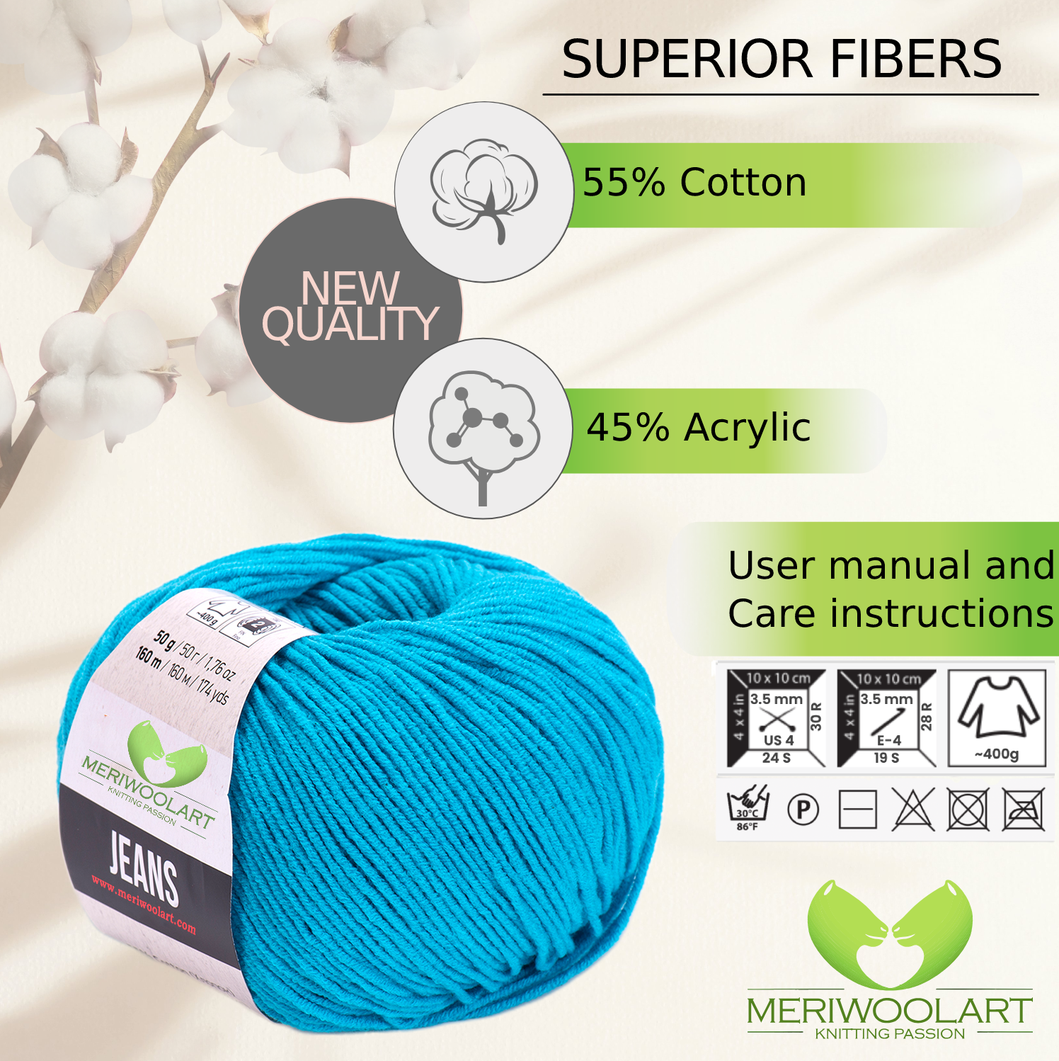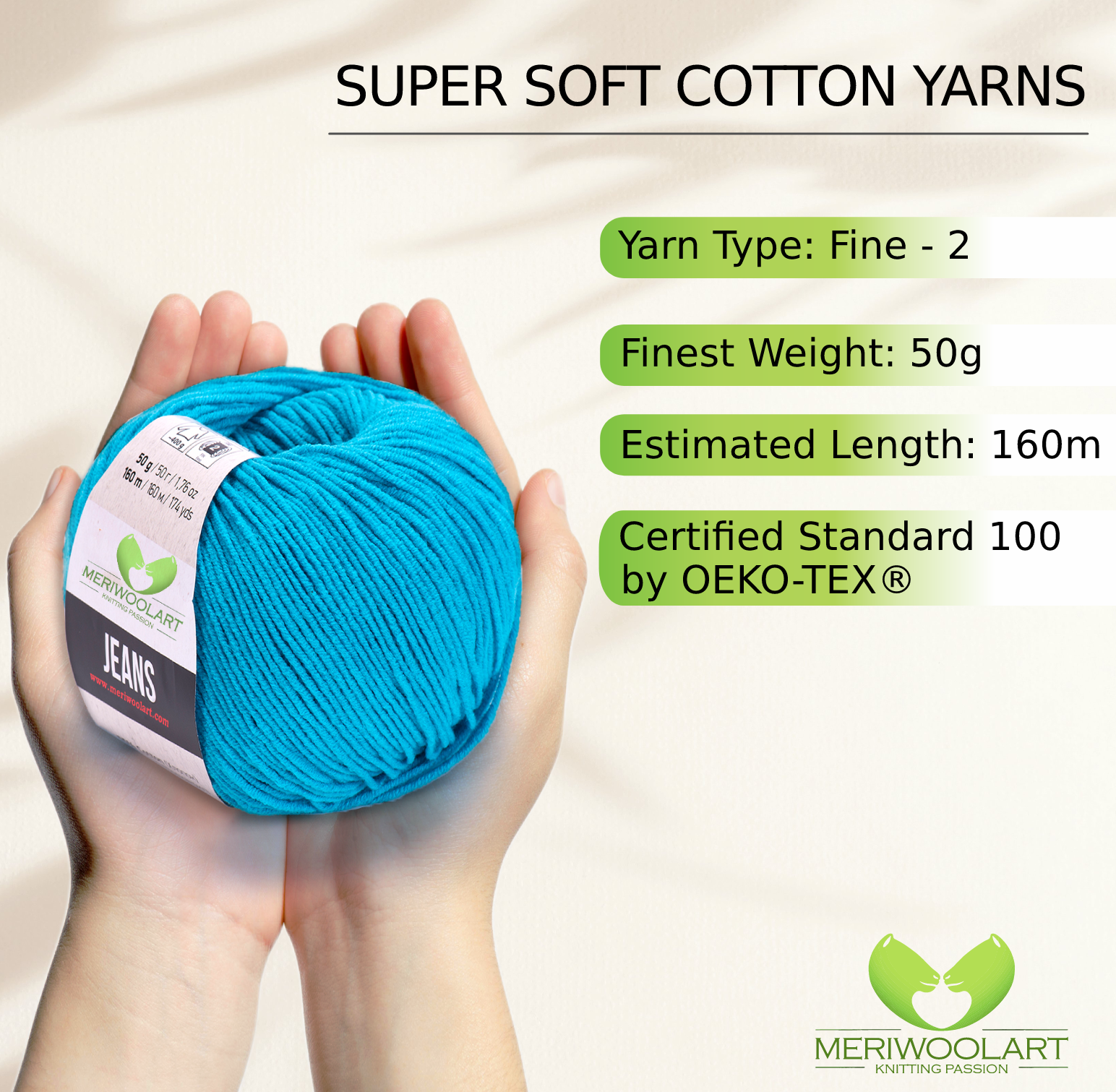 Experience the softness and versatility of MeriWoolArt® Natural Cotton Yarn, perfect for knitting, crocheting, and crafting baby clothes, blankets, and accessories.