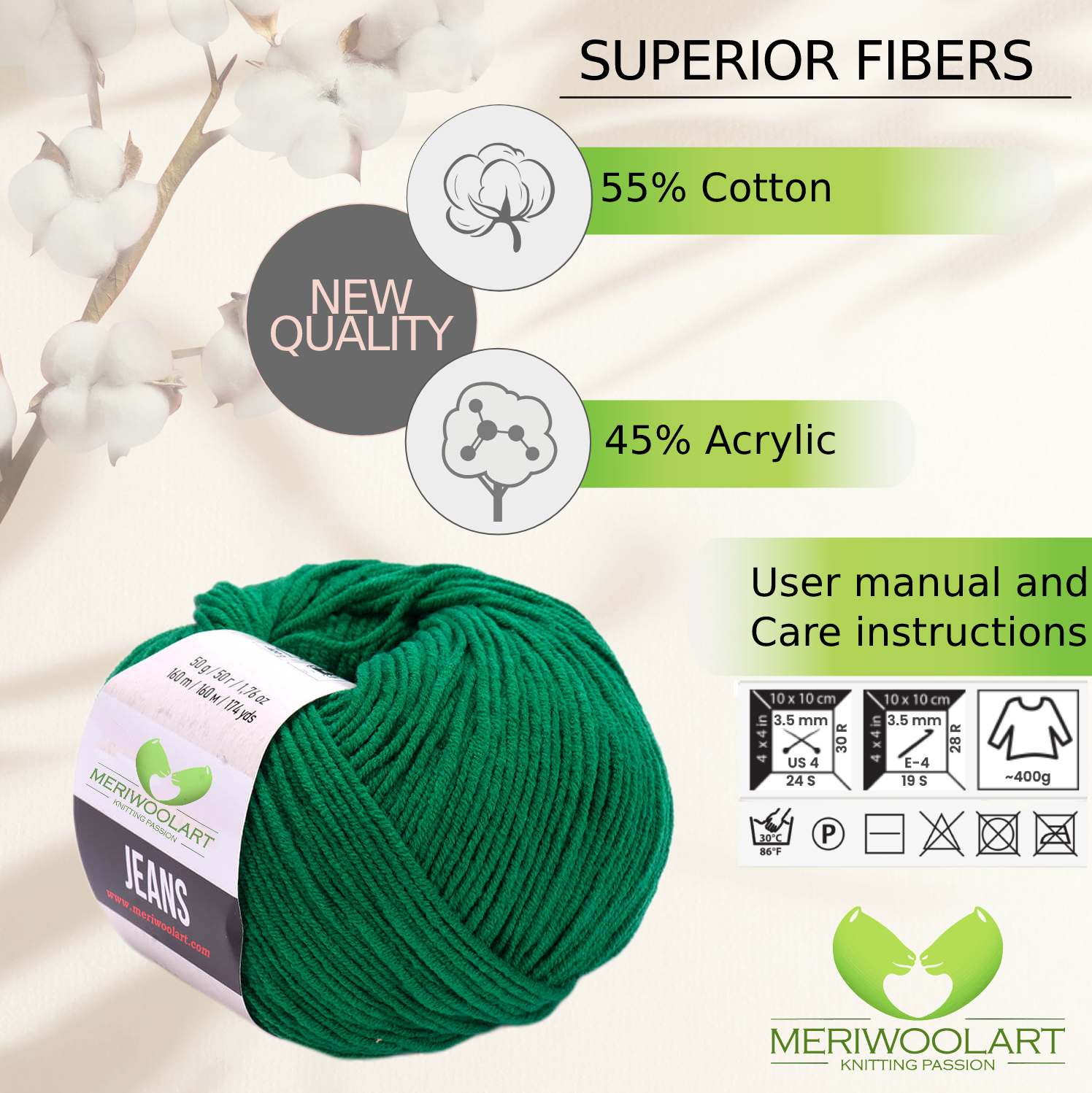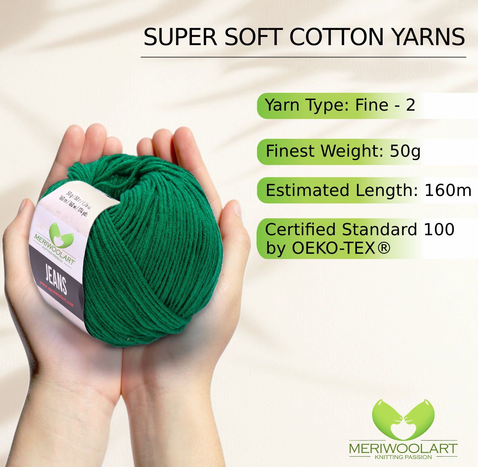 Experience the softness and versatility of MeriWoolArt® Natural Cotton Yarn, perfect for knitting, crocheting, and crafting baby clothes, blankets, and accessories.