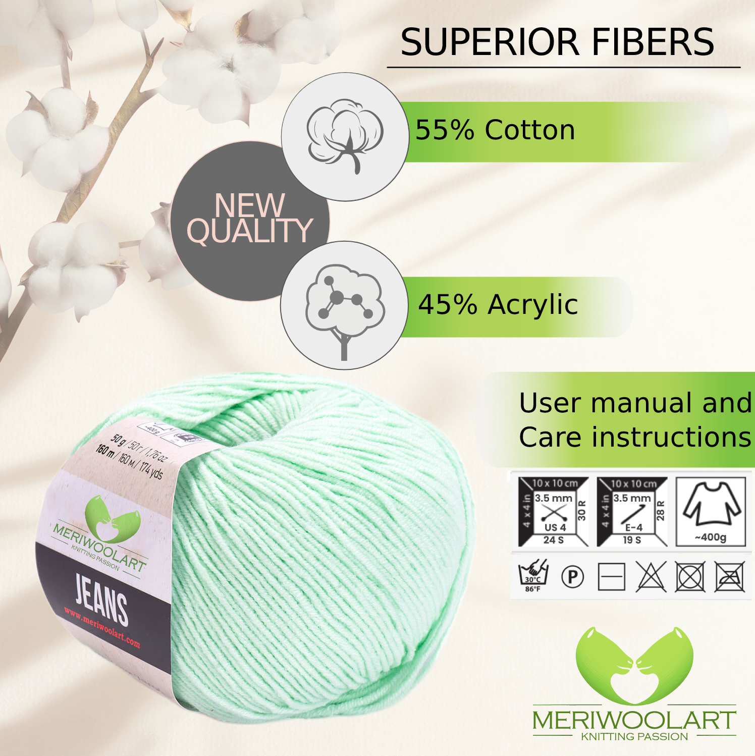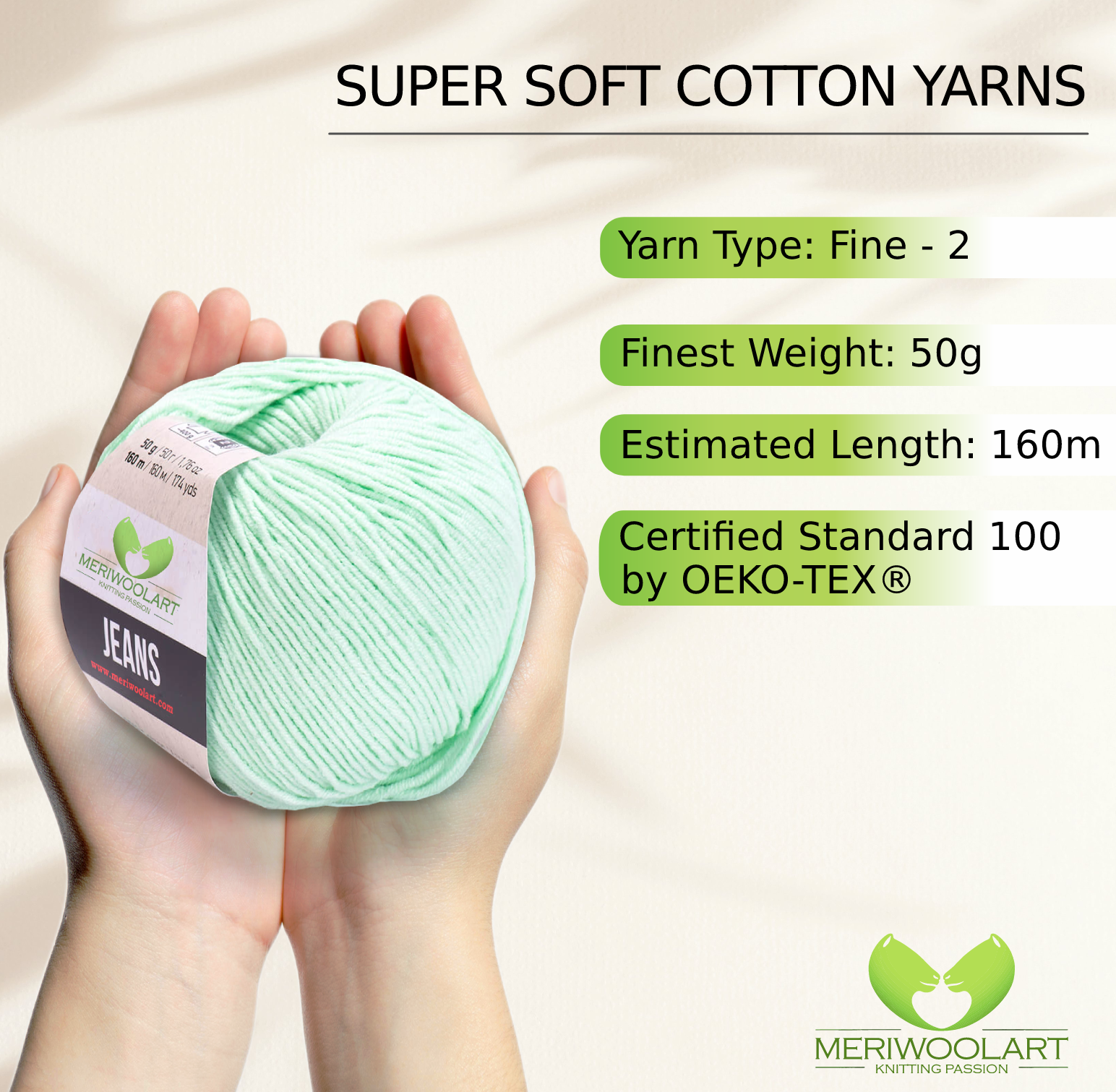 Experience the softness and versatility of MeriWoolArt® Natural Cotton Yarn, perfect for knitting, crocheting, and crafting baby clothes, blankets, and accessories.