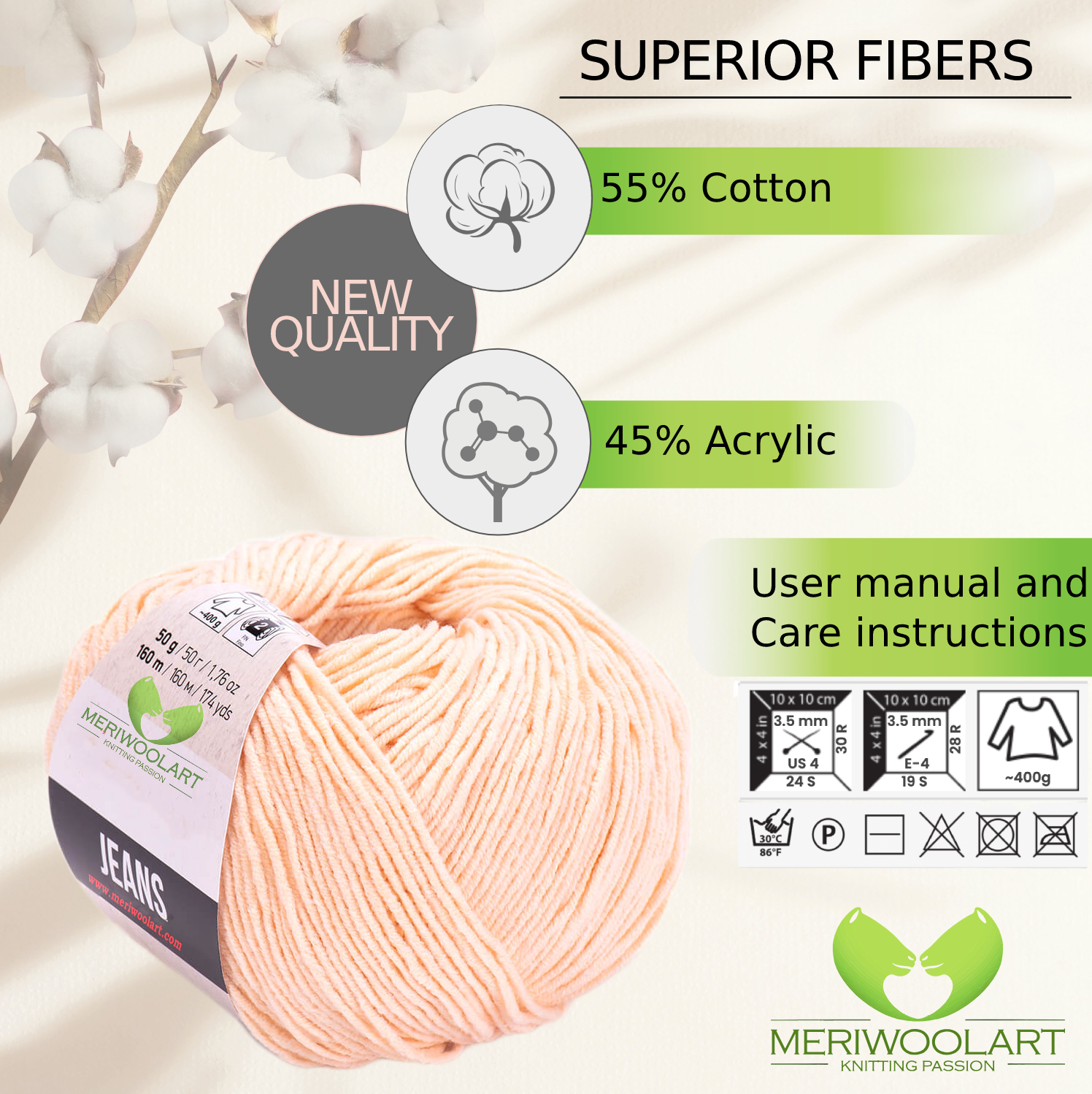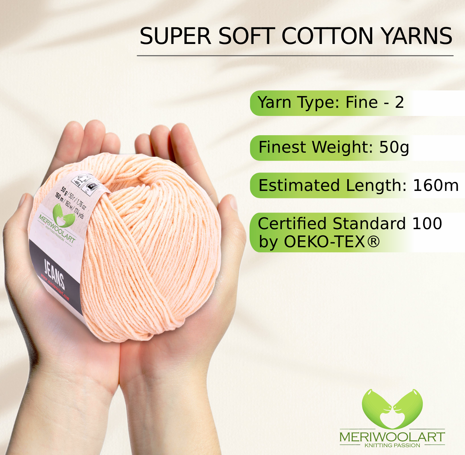 Experience the softness and versatility of MeriWoolArt® Natural Cotton Yarn, perfect for knitting, crocheting, and crafting baby clothes, blankets, and accessories.