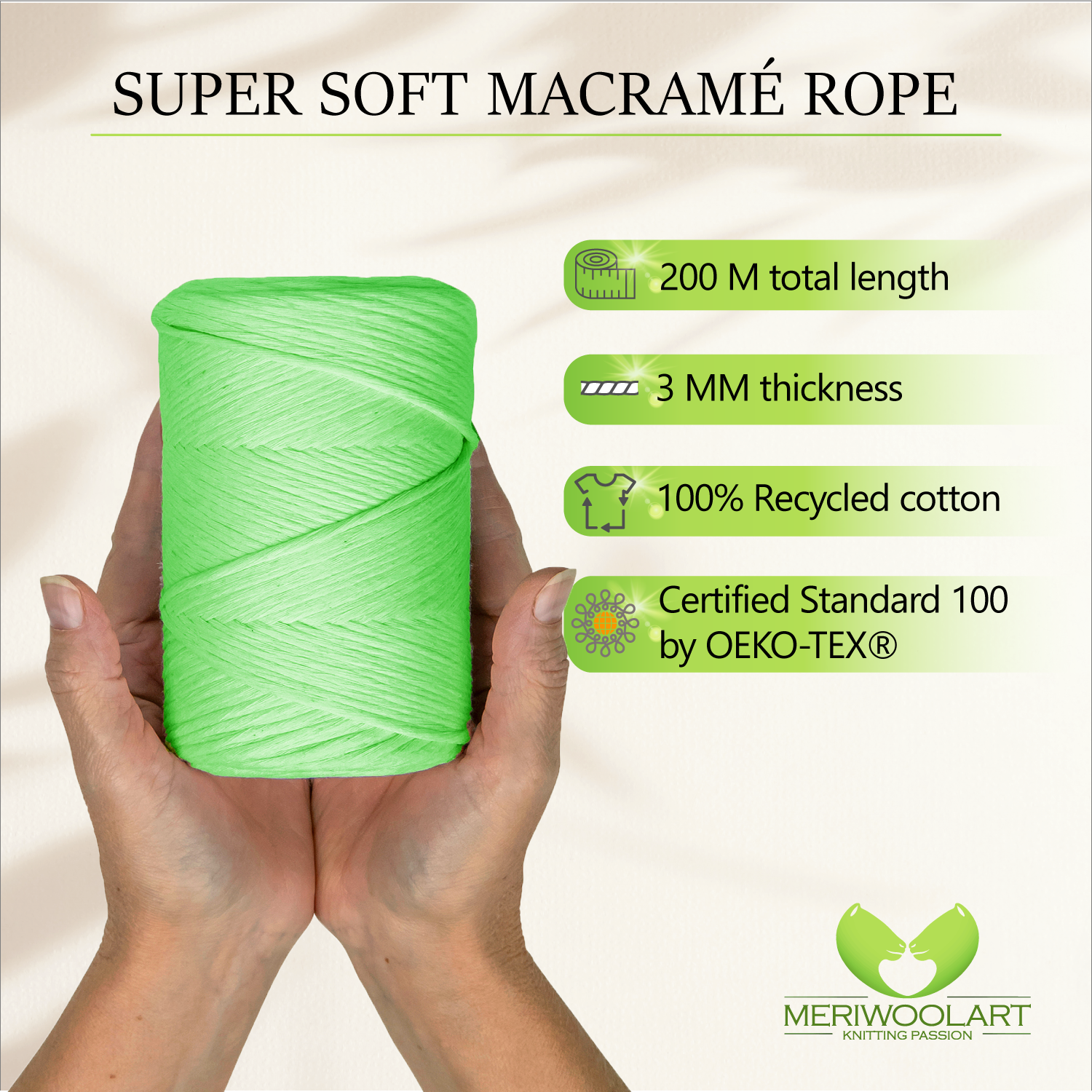 - SUPER SOFT COTTON YARN. 100% recycled Oeko-Tex certified cotton. Gently twisted macrame thread.