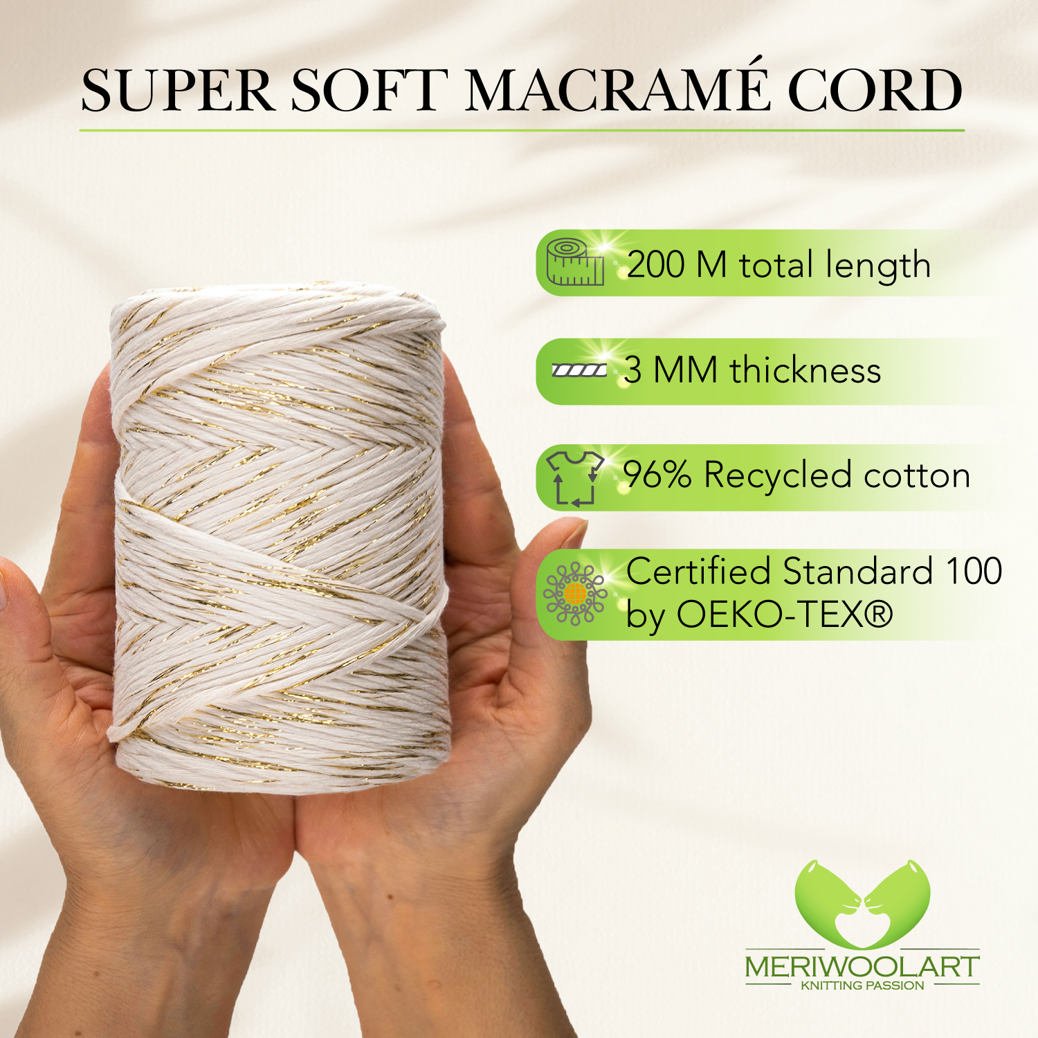 - SUPER SOFT COTTON YARN. 97% recycled Oeko-Tex certified cotton. Gently twisted macrame thread.