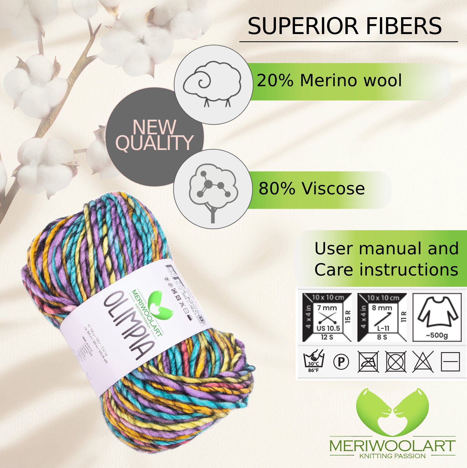 - 20% of merino wool fibre makes it one of the most luxurious giant yarn you can buy. If you want the softest merino wool, this is the one.