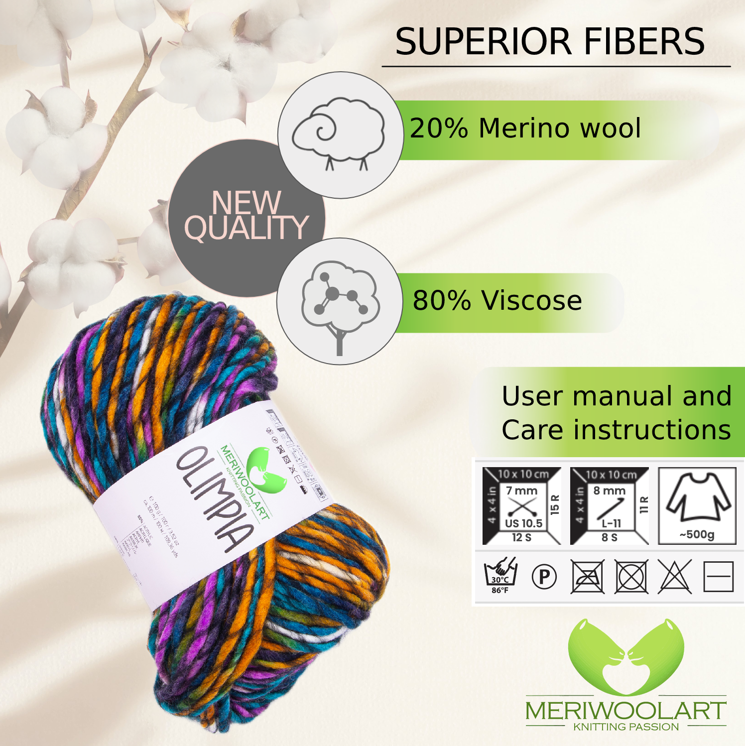 - 20% of merino wool fibre makes it one of the most luxurious giant yarn you can buy. If you want the softest merino wool, this is the one.