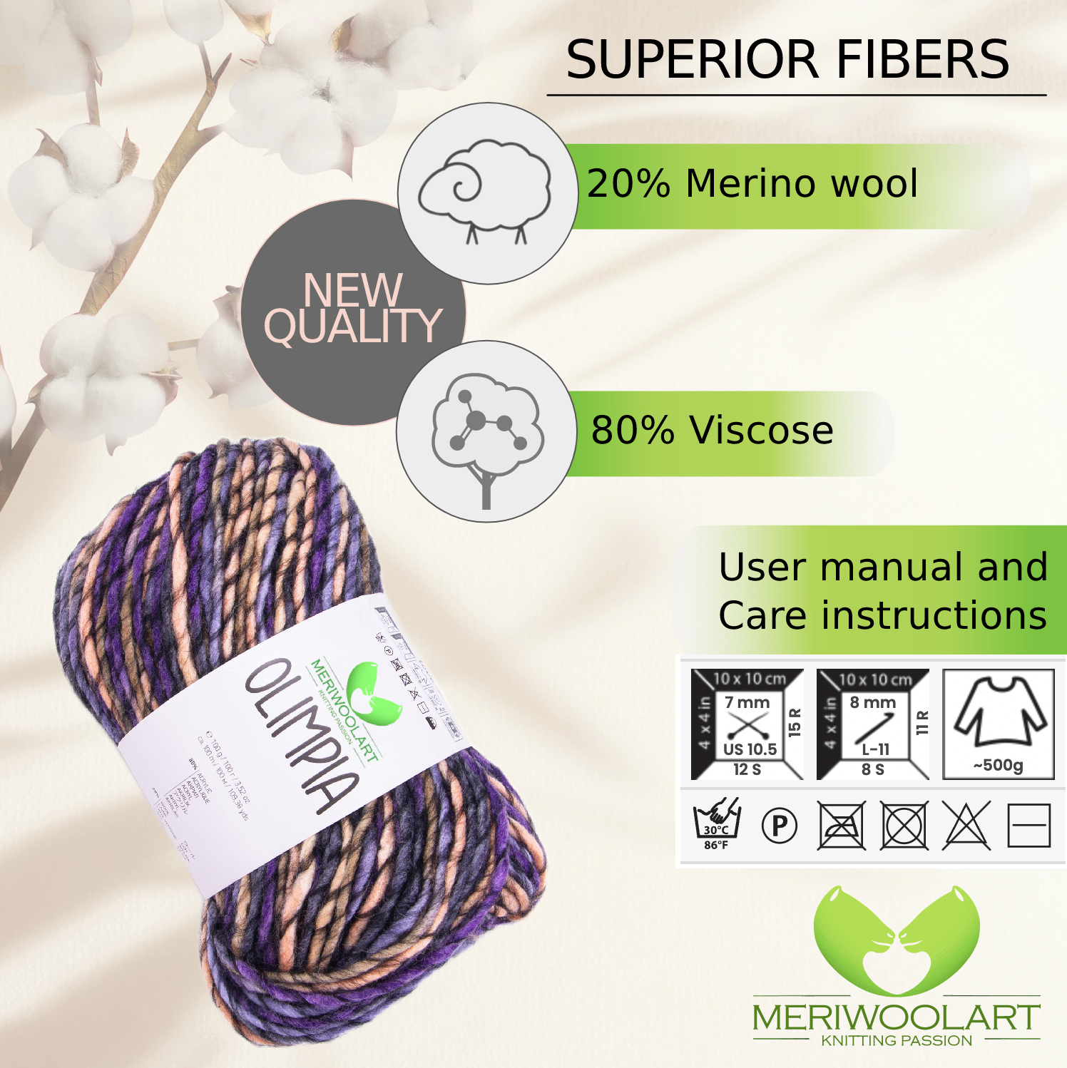- 20% of merino wool fibre makes it one of the most luxurious giant yarn you can buy. If you want the softest merino wool, this is the one.