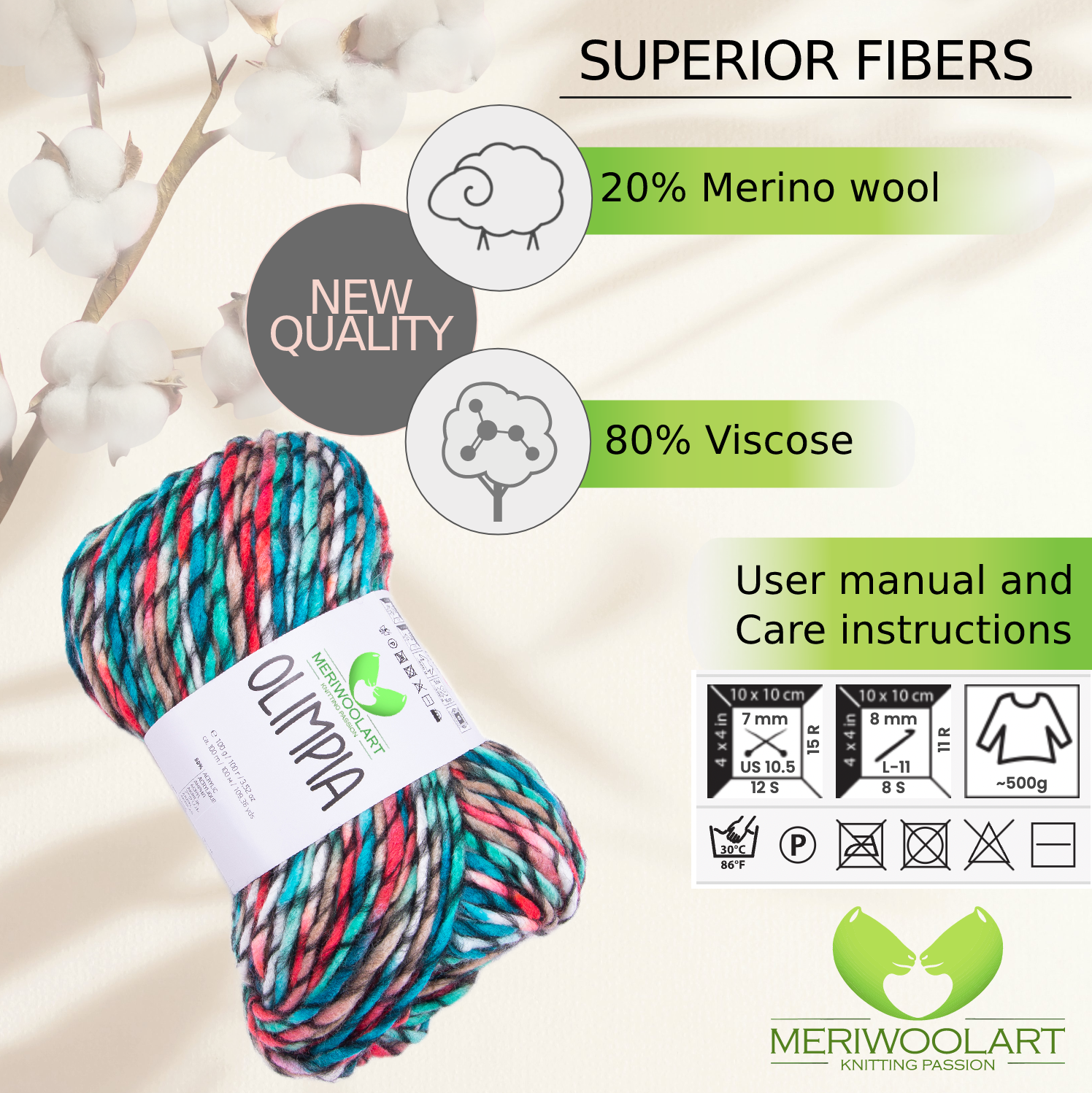- 20% of merino wool fibre makes it one of the most luxurious giant yarn you can buy. If you want the softest merino wool, this is the one.