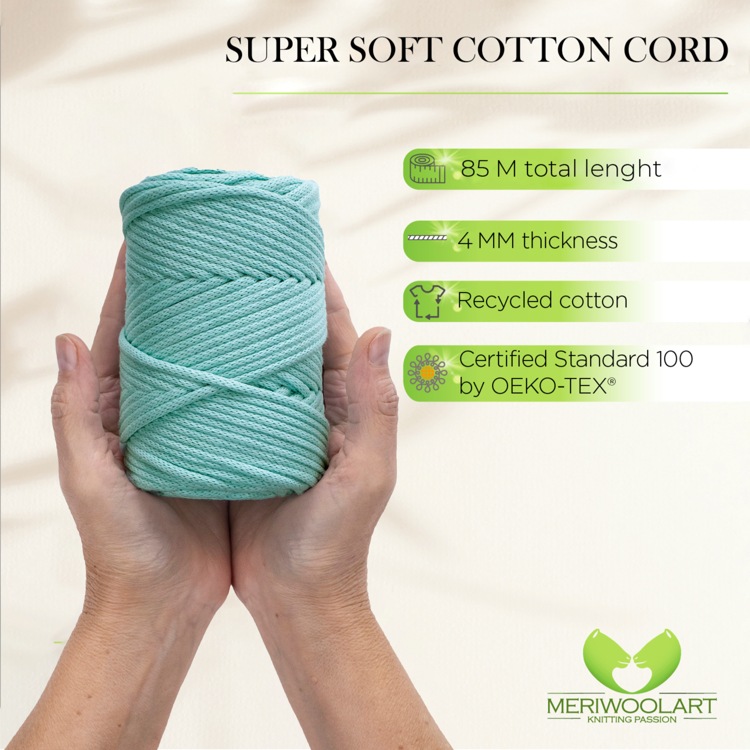 - Perfect for large projects, like a crochet bag or macramé pillow. The thick cord is made of two layers, making it durable, elastic and sustainable.
