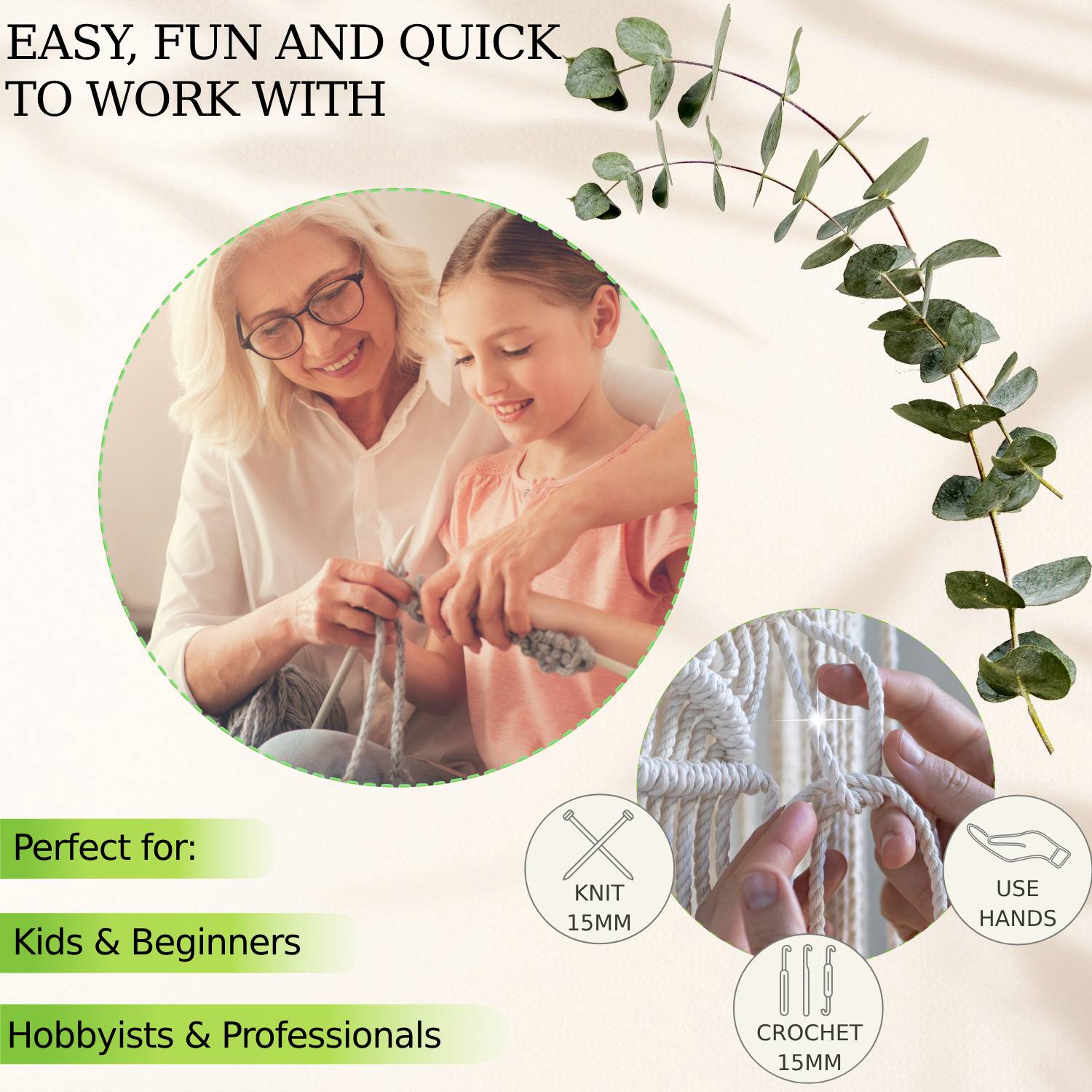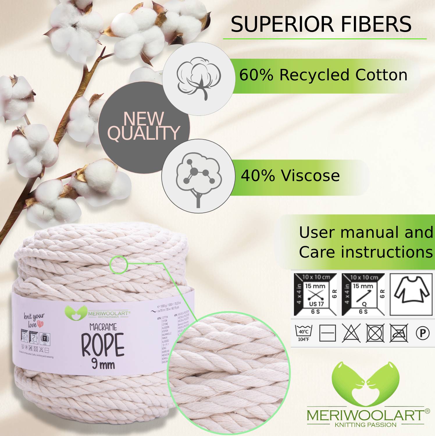 🌟 High-Quality Macramé Rope: Made from recycled cotton with durable viscose to prevent fraying; easy to handle and gentle on hands.