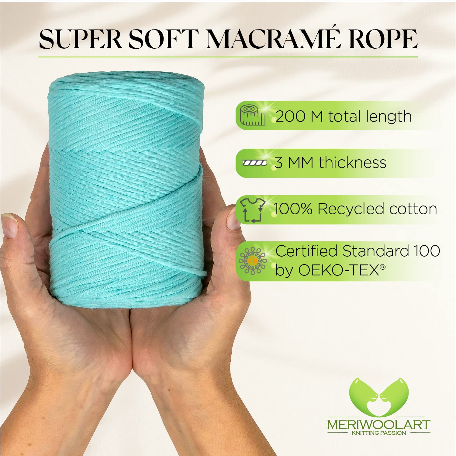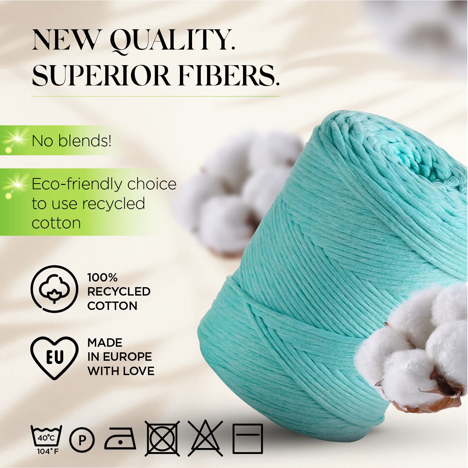 - SUPER SOFT COTTON YARN. 100% recycled Oeko-Tex certified cotton. Gently twisted macrame thread.