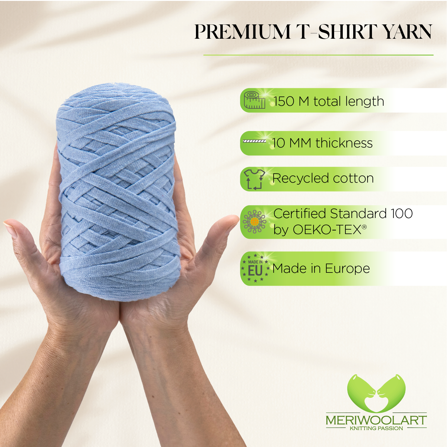 - MeriWoolArt T-shirt yarn for crocheting, knitting and macrame is gentle and easy to work with thanks to the special blend - recycled cotton yarn (85%) and durable viscose (15%).