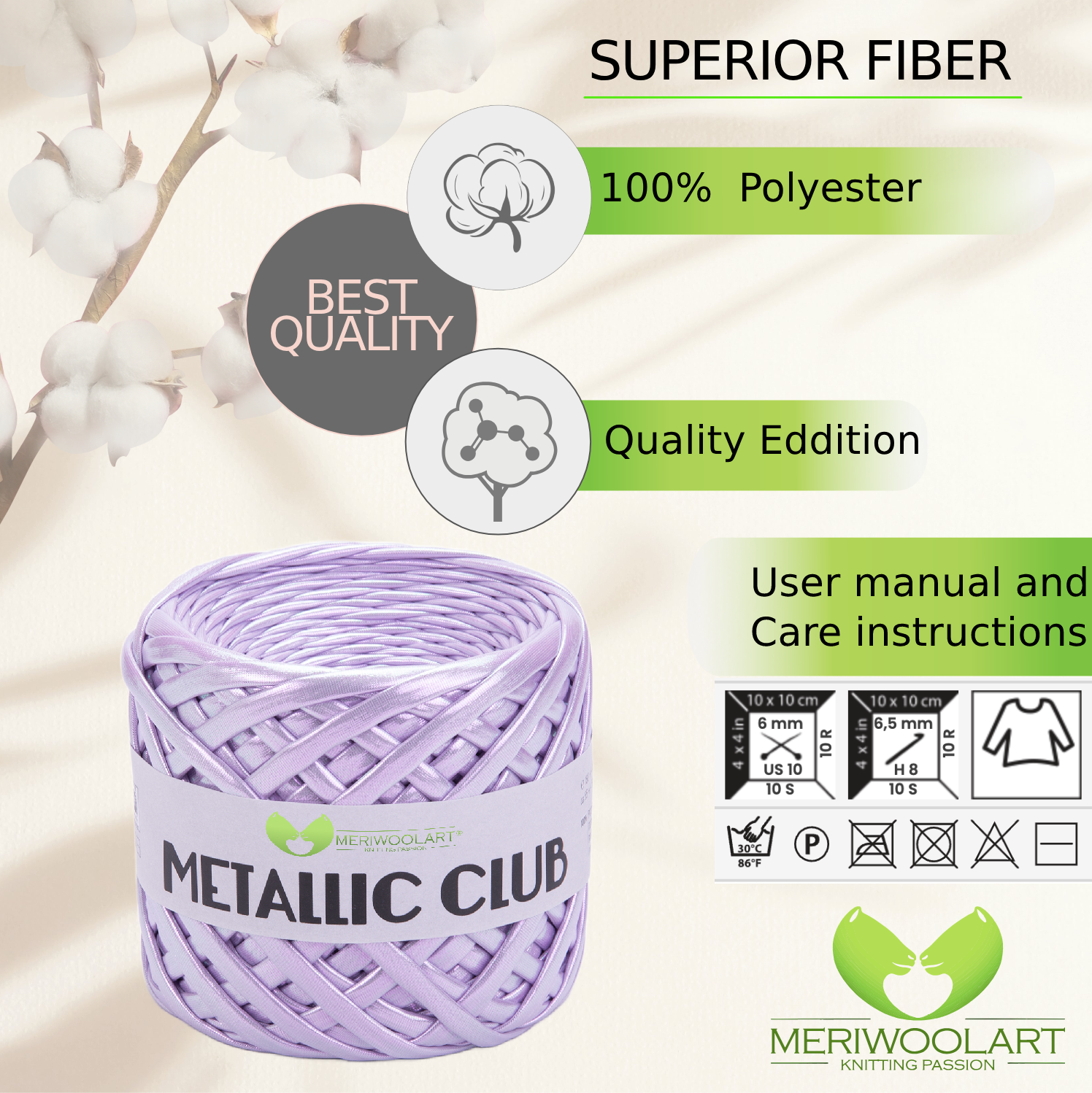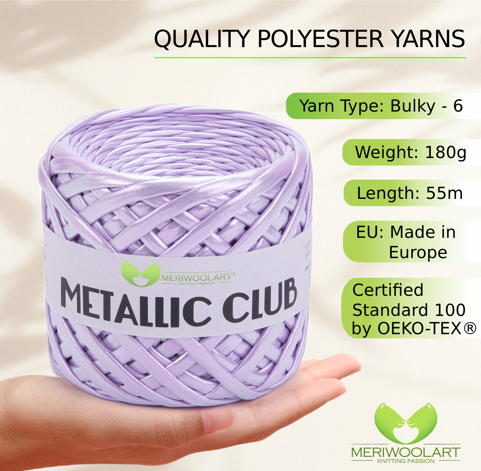 Experience the luxurious feel of MeriWoolArt® Premium Metallic T-Shirt Yarn, perfect for knitting, crocheting, and creating stylish accessories.