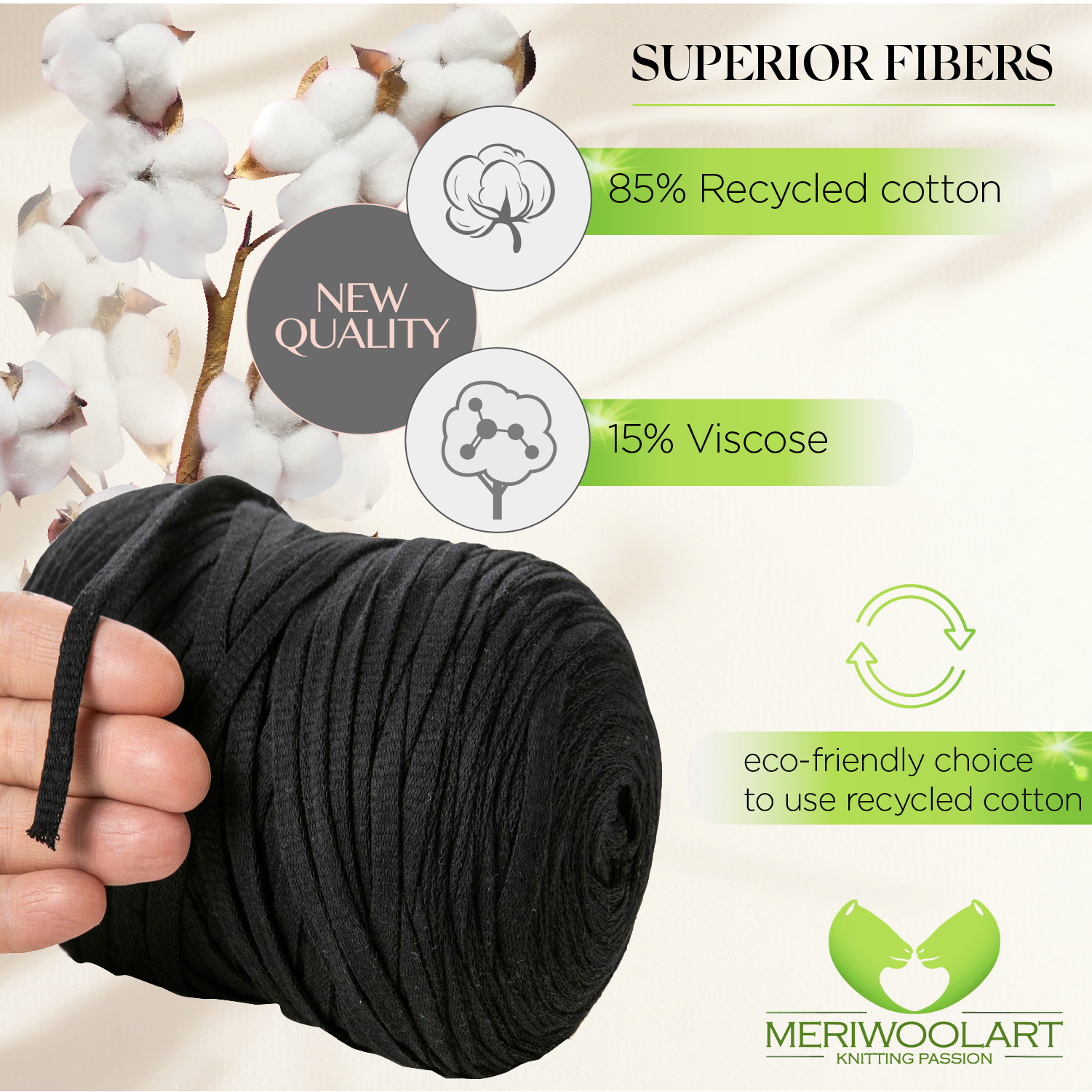 - MeriWoolArt T-shirt yarn for crocheting, knitting and macrame is gentle and easy to work with thanks to the special blend - recycled cotton yarn (85%) and durable viscose (15%).