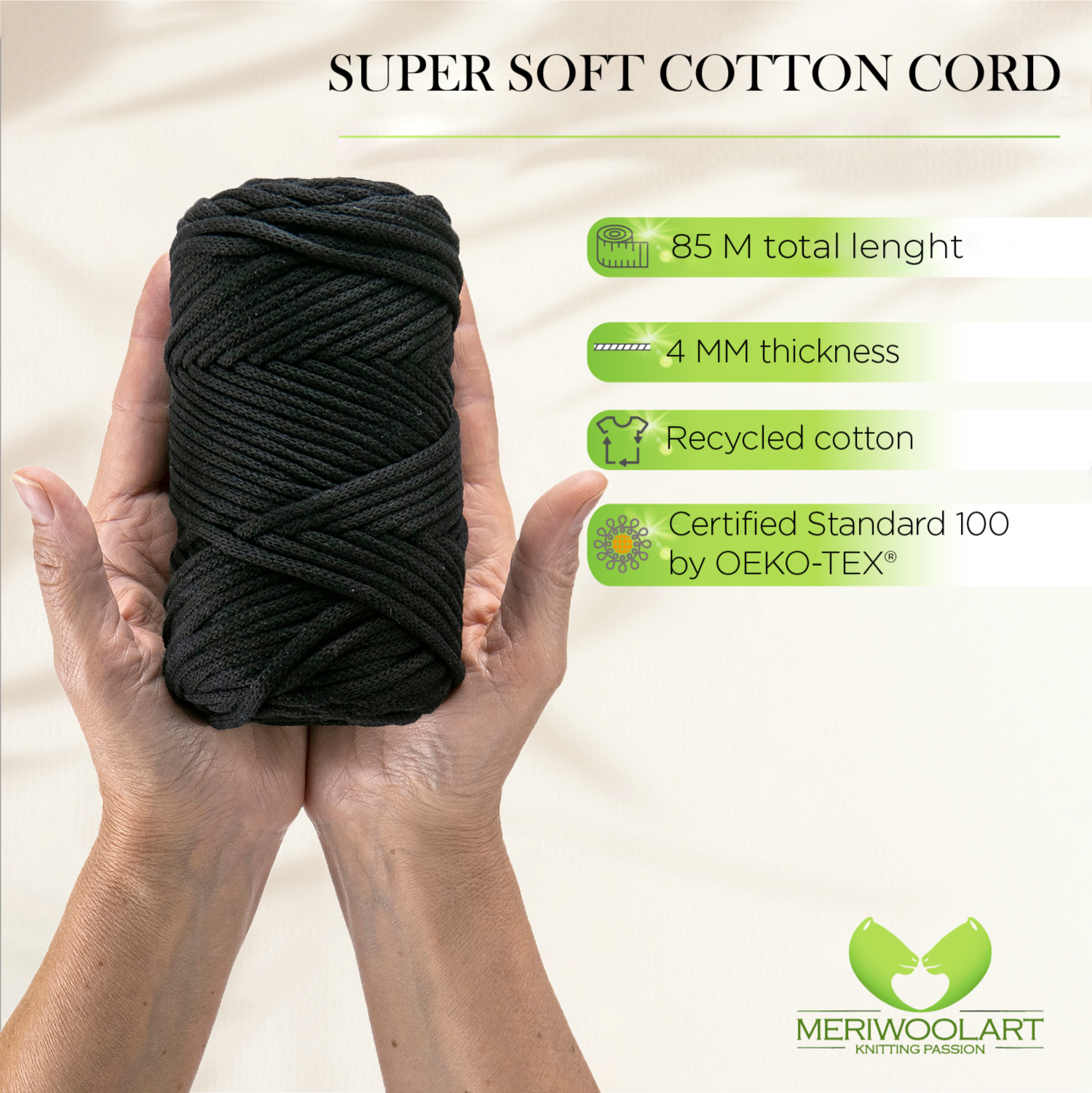 - Environmentally friendly thick cotton yarn for crochet and macramé knots of the highest quality.
