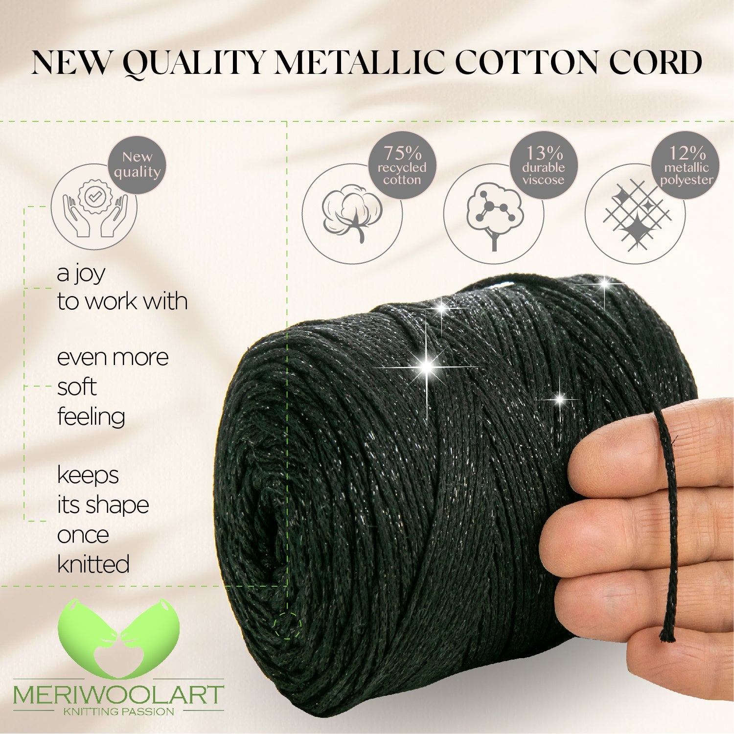 - Macramé bead string with glittering effect. Although it contains a metallic thread, the ropes with this luxury yarn are very soft and lush.