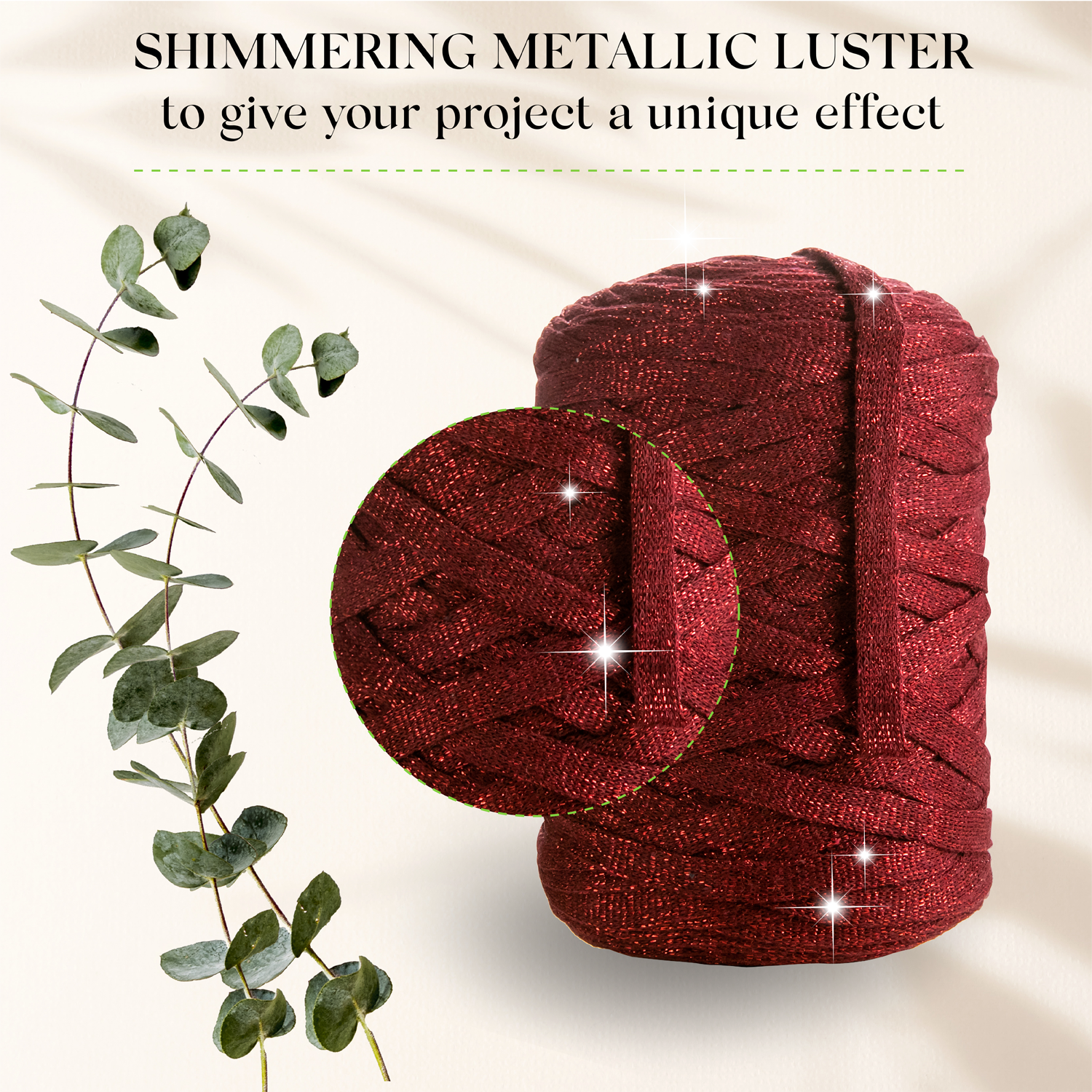 Burgundy Cotton Ribbon Lurex 10mm 125m