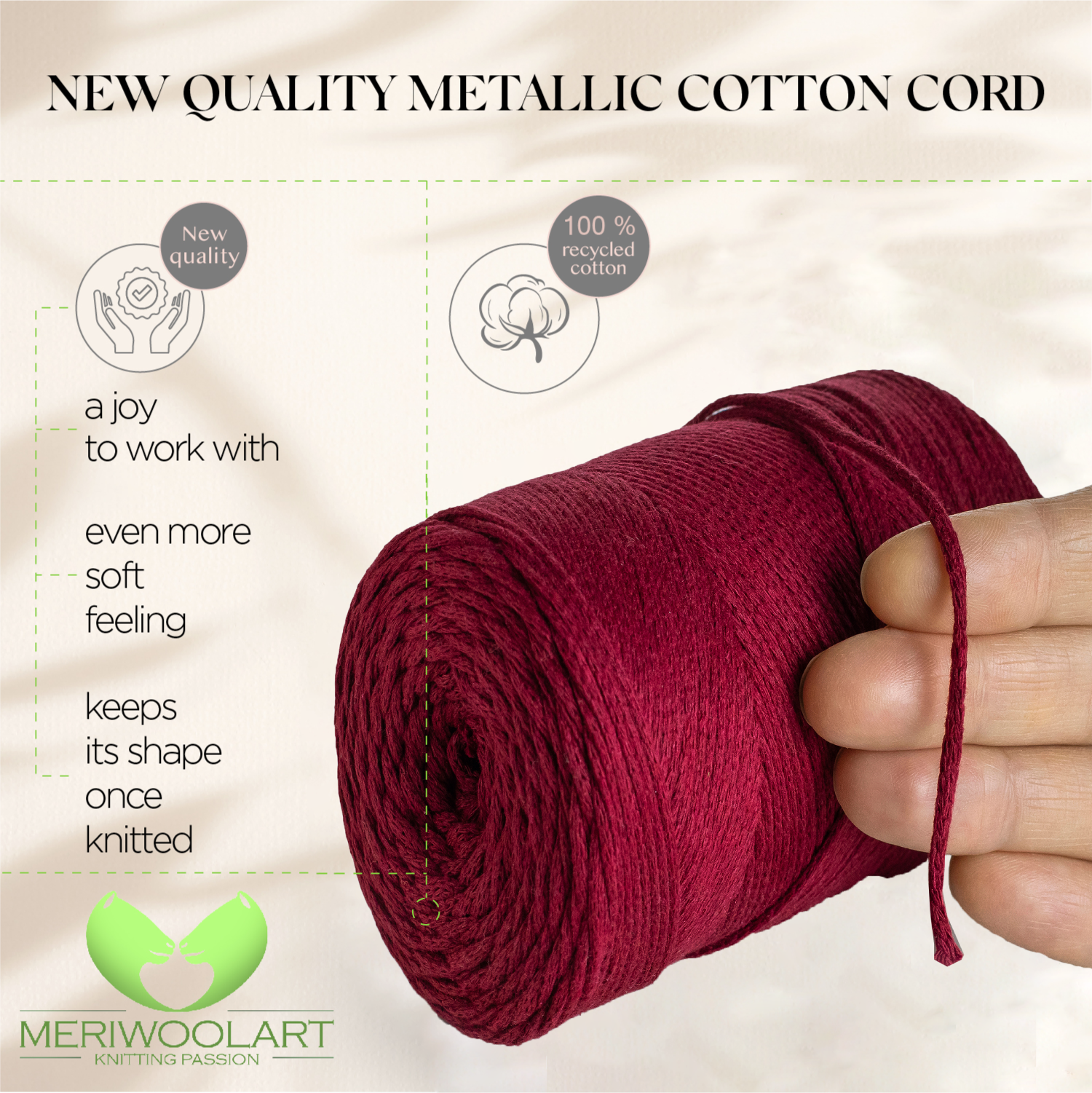 - MeriWoolArt is the only brand to offer a recycled cotton yarn spool with a recycled paper core.