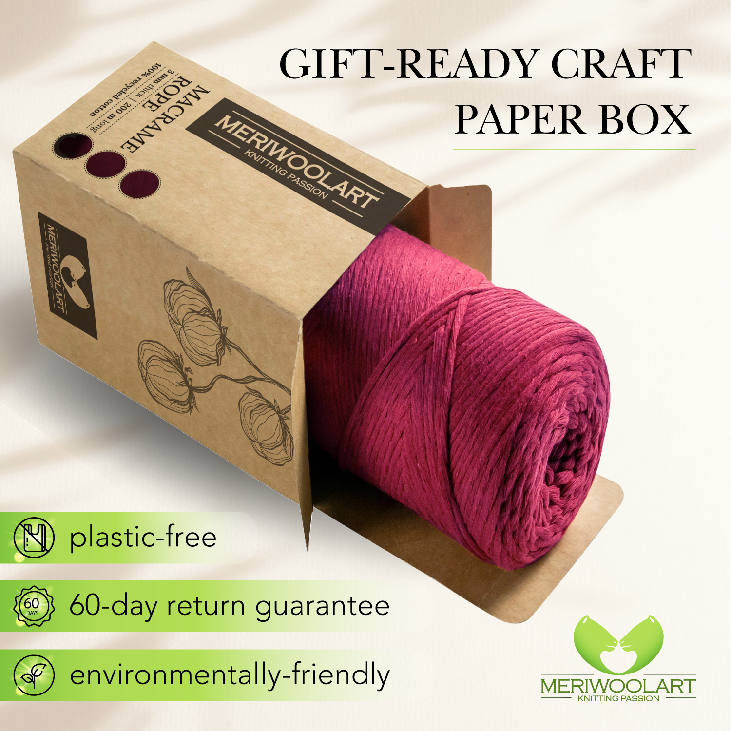 - SUPER SOFT COTTON YARN. 100% recycled Oeko-Tex certified cotton. Gently twisted macrame thread.