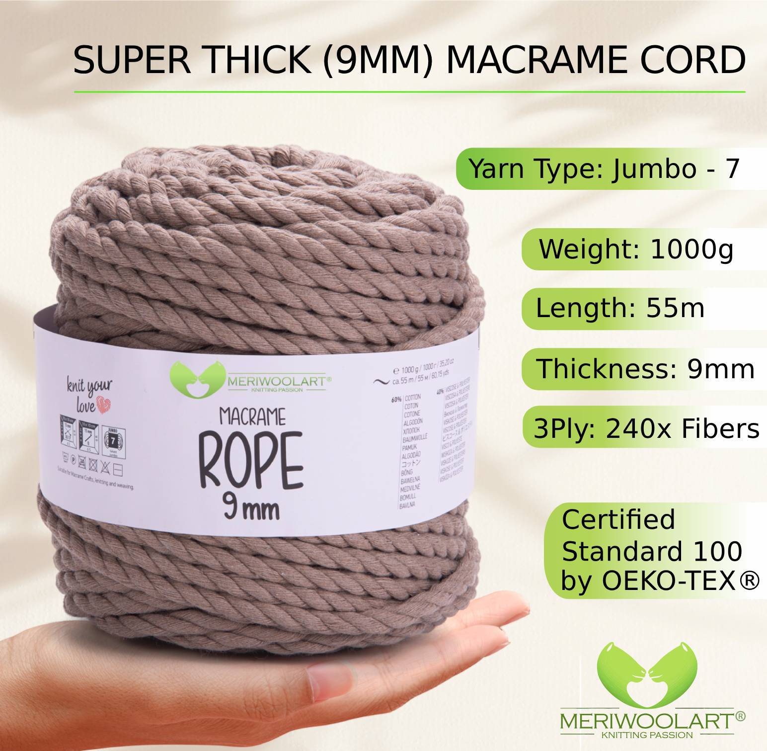 Dark Sand MACRAMÉ ROPE 9MM 55M
