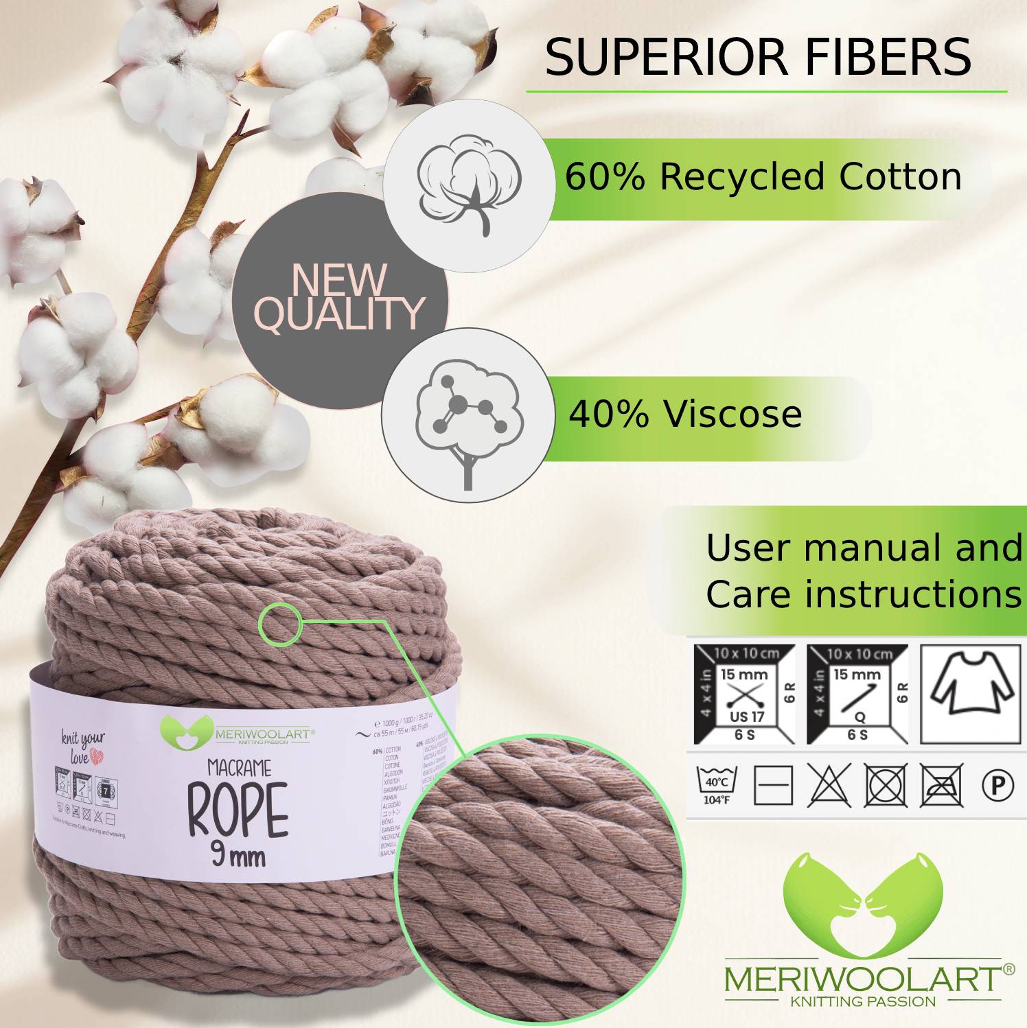 Discover the versatility and elegance of MeriWoolArt® Premium Macramé Yarn, perfect for creating beautiful wall hangings, plant hangers, curtains, and more.