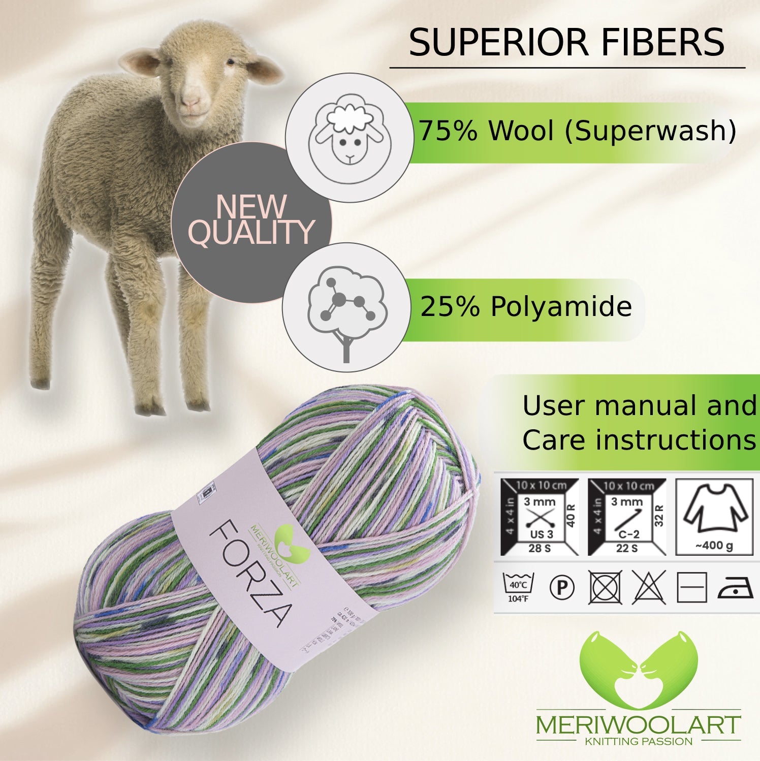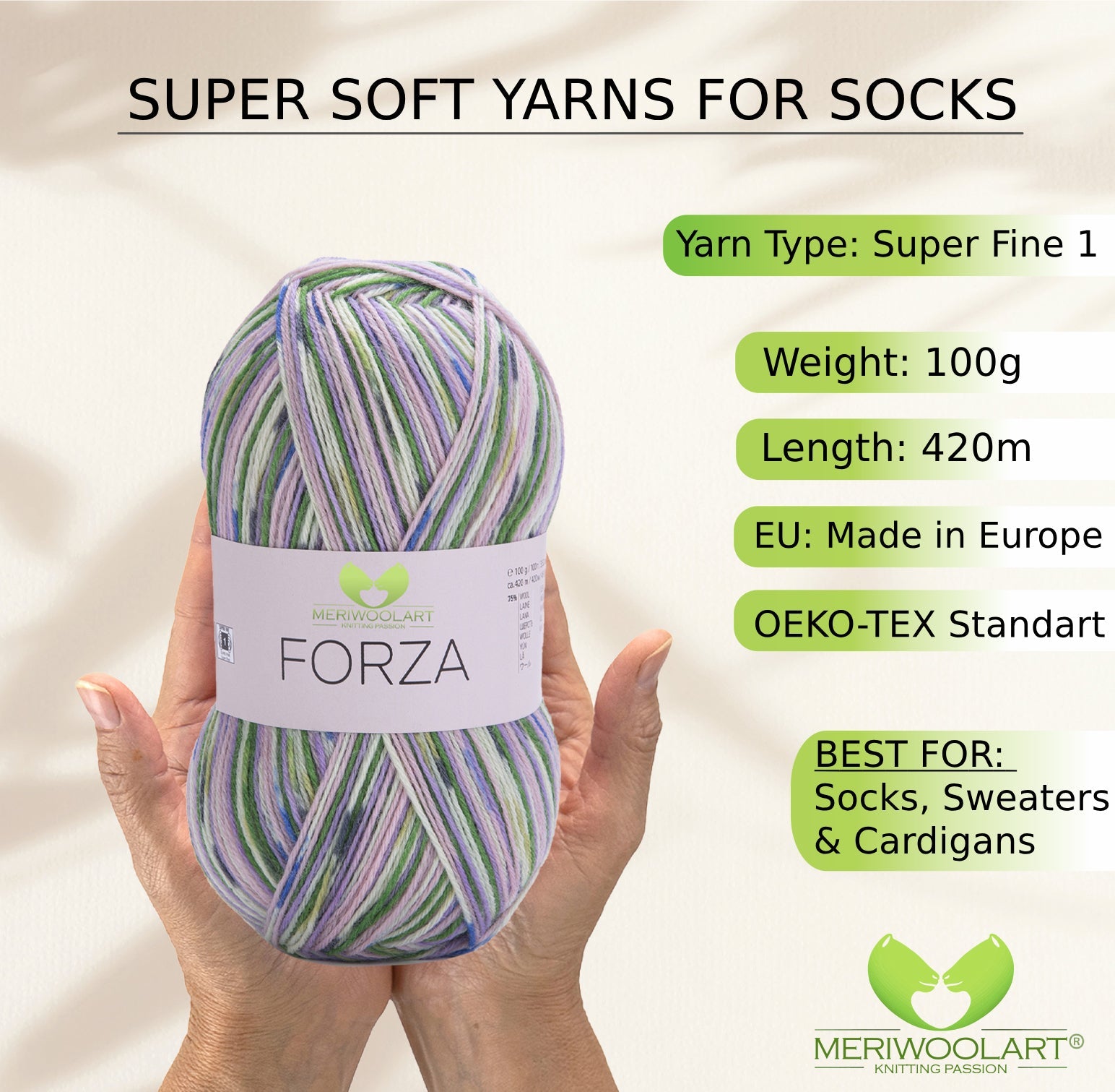 Discover MeriWoolArt® Sock Yarn 4-Ply – 100g Merino Wool Yarn for Knitting & Crocheting, 75% Virgin Wool (Superwash), 25% Polyamide, 420m – Ideal for Socks for Men & Women, Sweaters & Cardigans