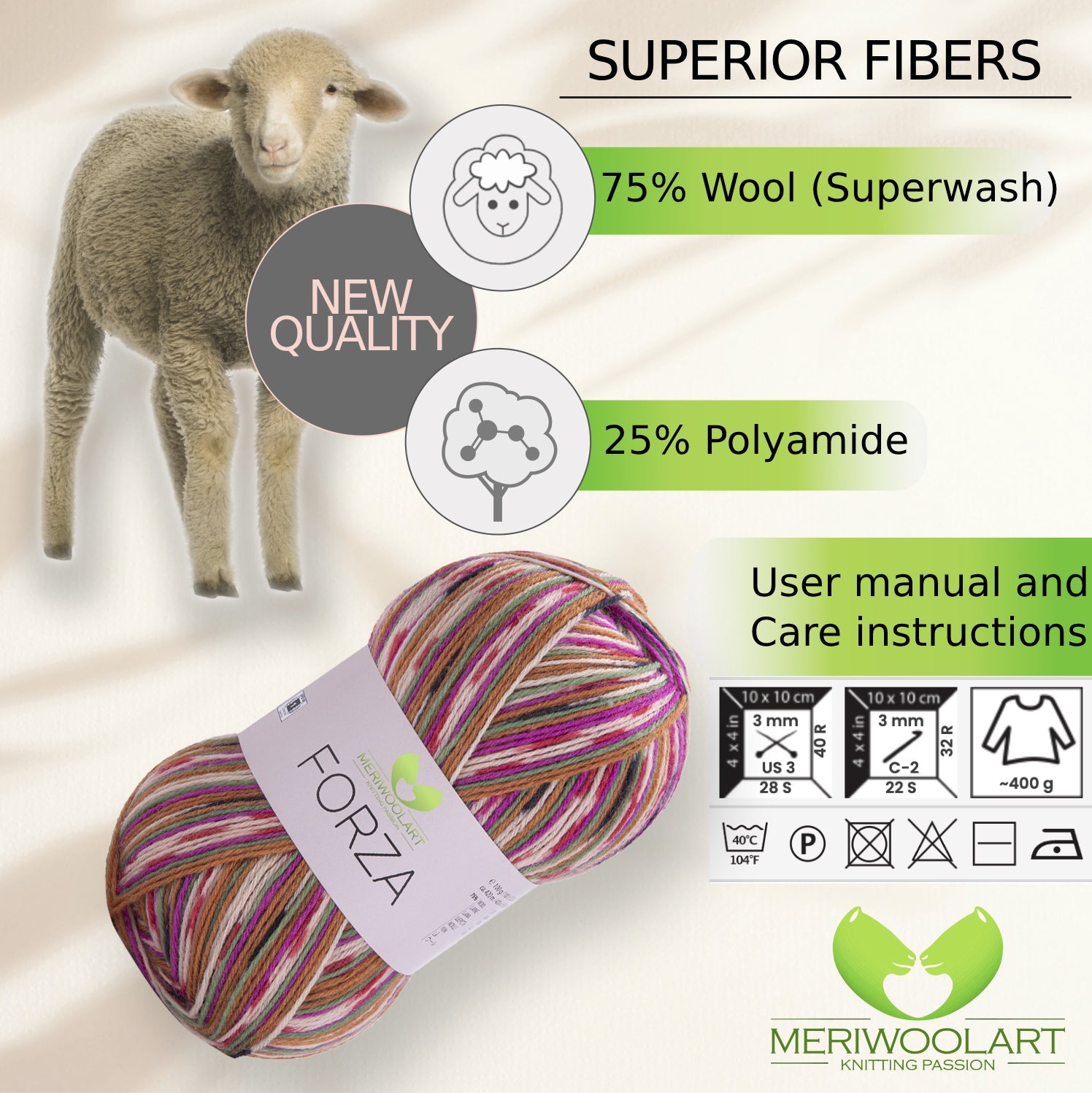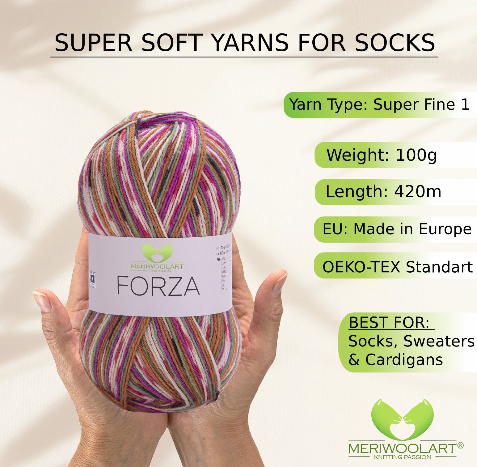 Discover MeriWoolArt® Sock Yarn 4-Ply – 100g Merino Wool Yarn for Knitting & Crocheting, 75% Virgin Wool (Superwash), 25% Polyamide, 420m – Ideal for Socks for Men & Women, Sweaters & Cardigans