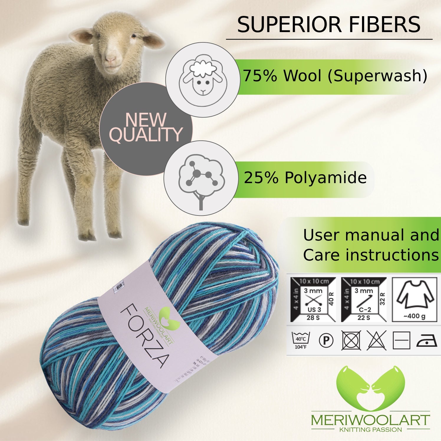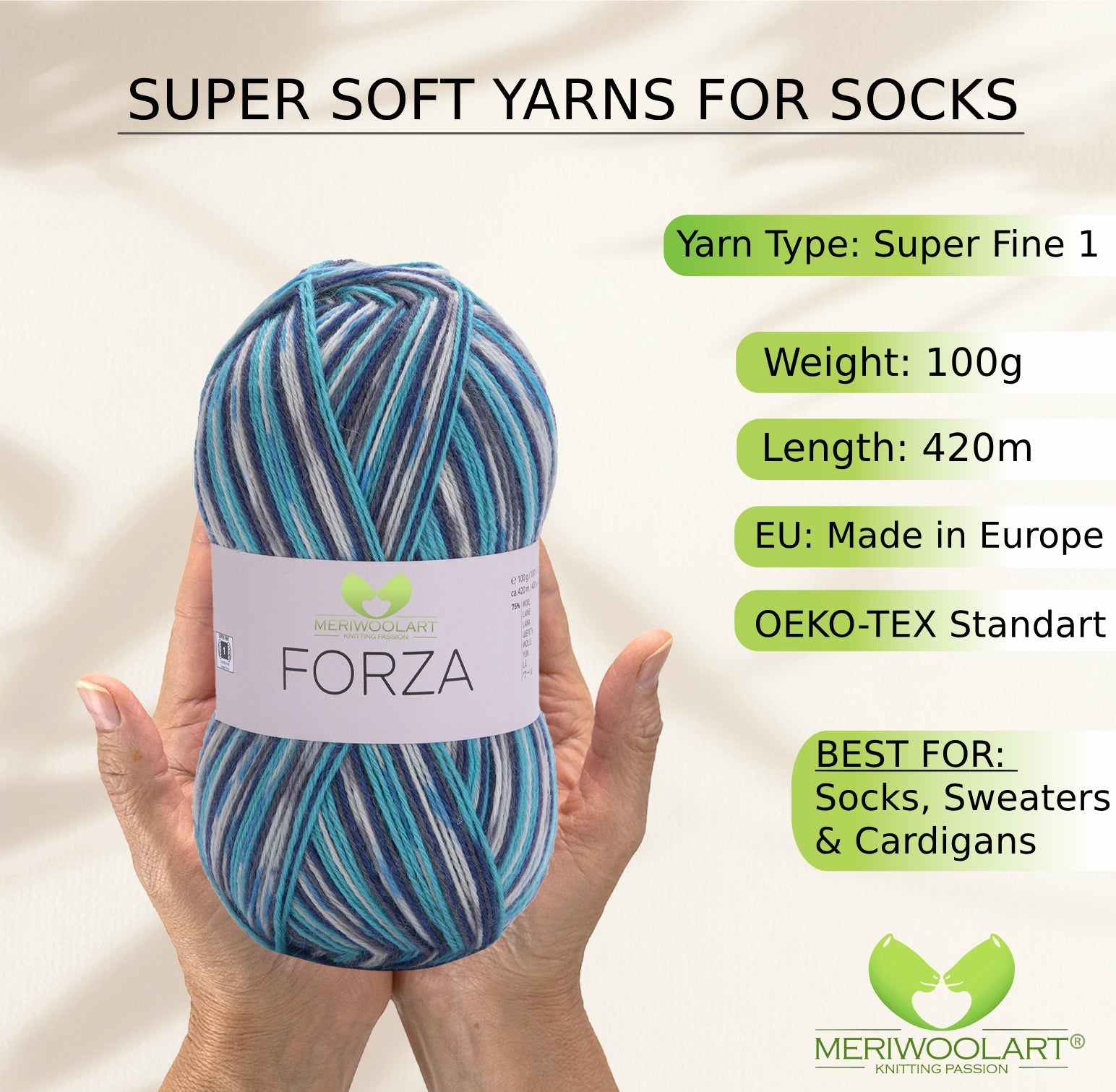 Discover MeriWoolArt® Sock Yarn 4-Ply – 100g Merino Wool Yarn for Knitting & Crocheting, 75% Virgin Wool (Superwash), 25% Polyamide, 420m – Ideal for Socks for Men & Women, Sweaters & Cardigans