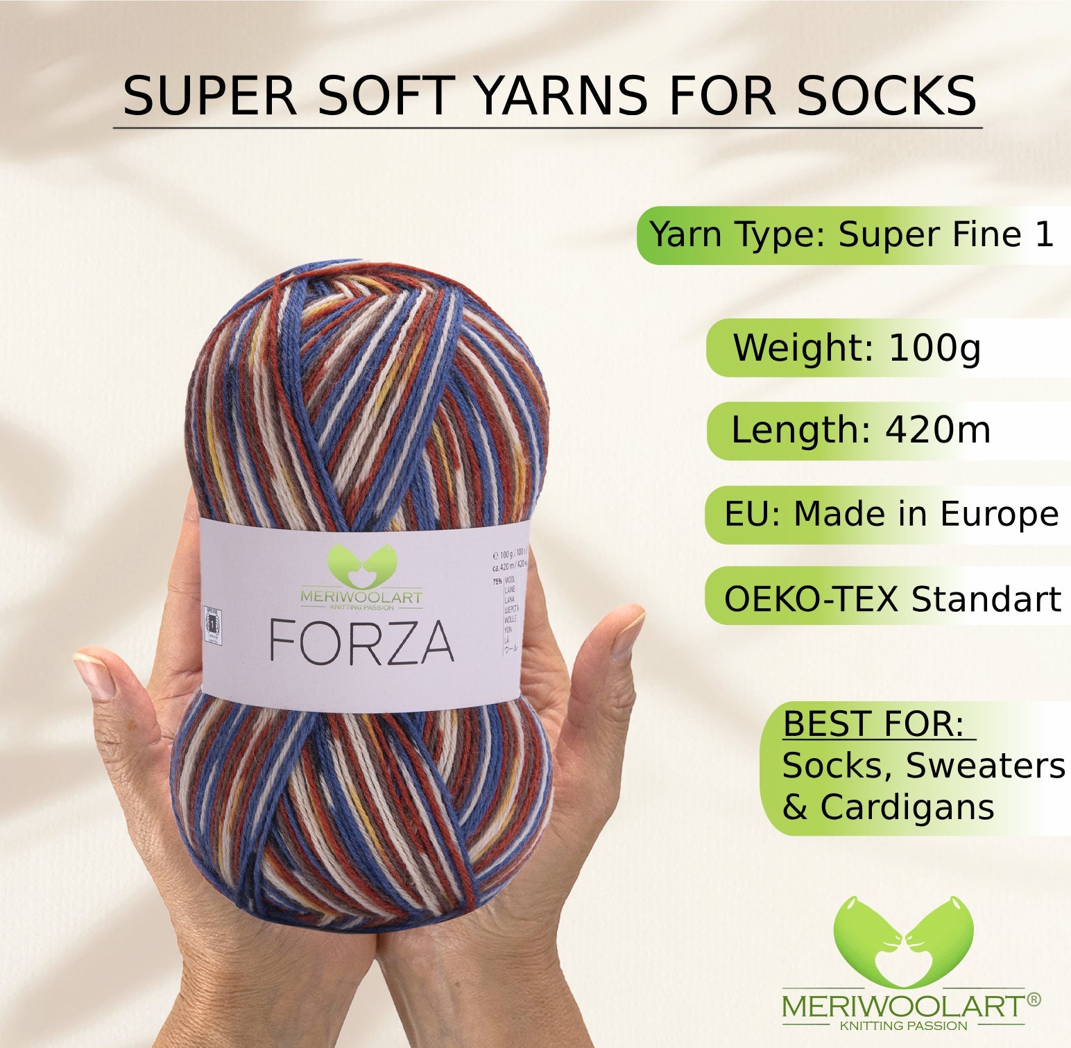 Discover MeriWoolArt® Sock Yarn 4-Ply – 100g Merino Wool Yarn for Knitting & Crocheting, 75% Virgin Wool (Superwash), 25% Polyamide, 420m – Ideal for Socks for Men & Women, Sweaters & Cardigans