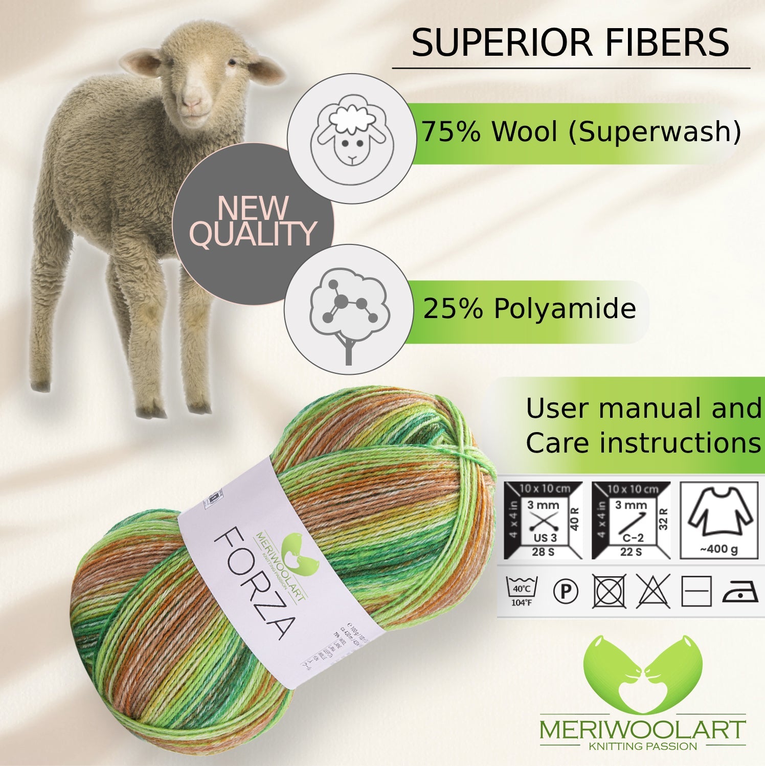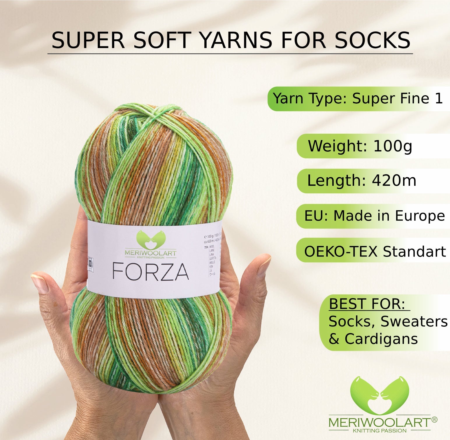 Discover MeriWoolArt® Sock Yarn 4-Ply – 100g Merino Wool Yarn for Knitting & Crocheting, 75% Virgin Wool (Superwash), 25% Polyamide, 420m – Ideal for Socks for Men & Women, Sweaters & Cardigans