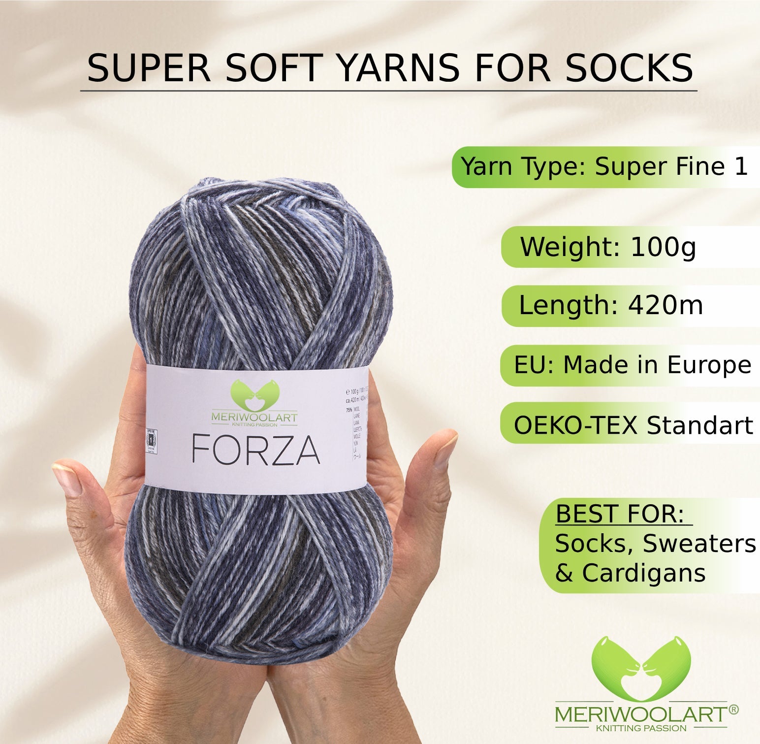Discover MeriWoolArt® Sock Yarn 4-Ply – 100g Merino Wool Yarn for Knitting & Crocheting, 75% Virgin Wool (Superwash), 25% Polyamide, 420m – Ideal for Socks for Men & Women, Sweaters & Cardigans