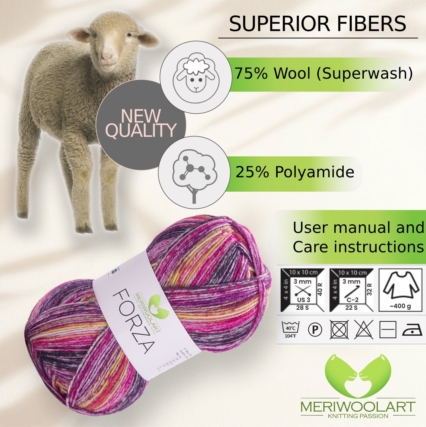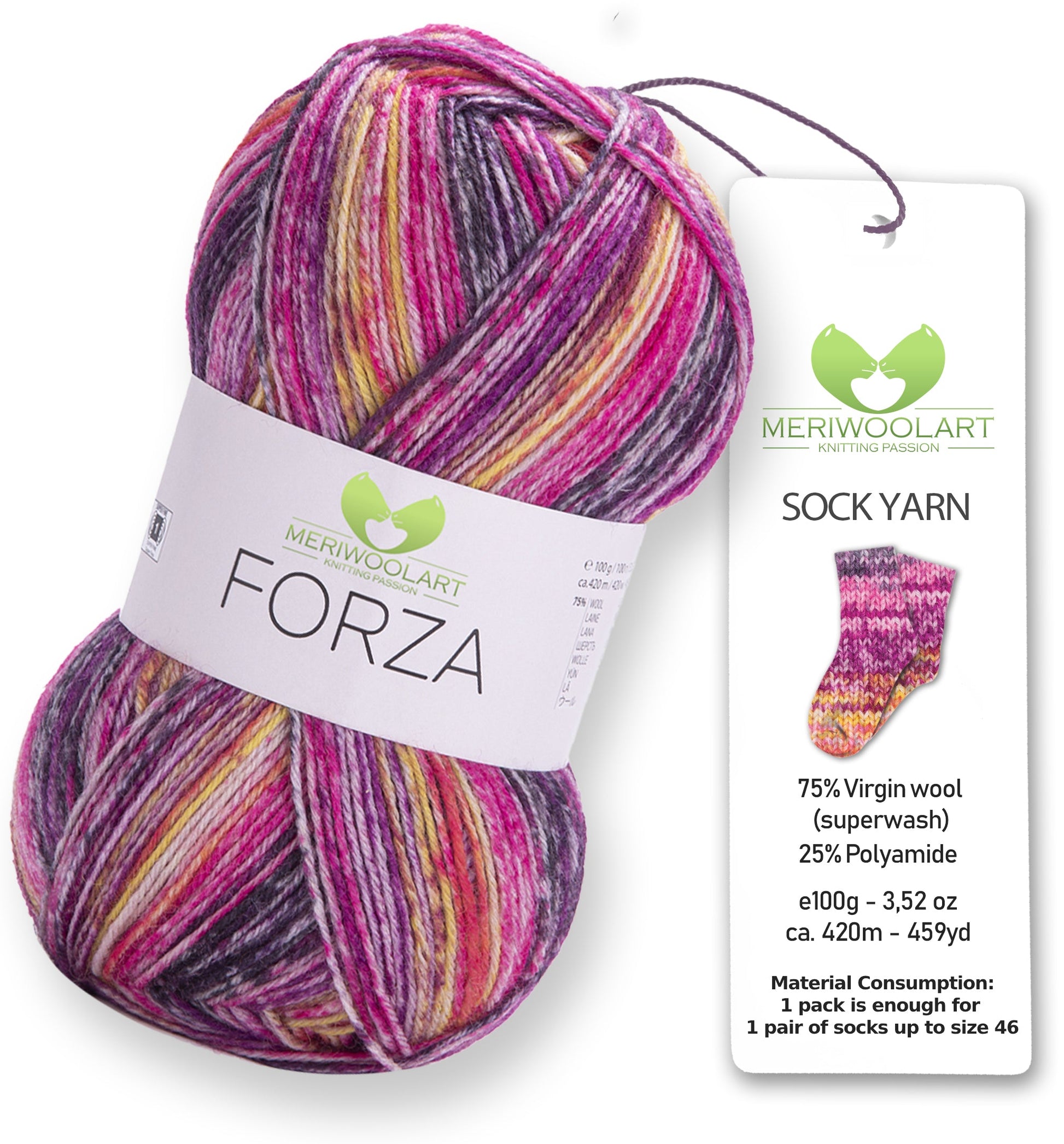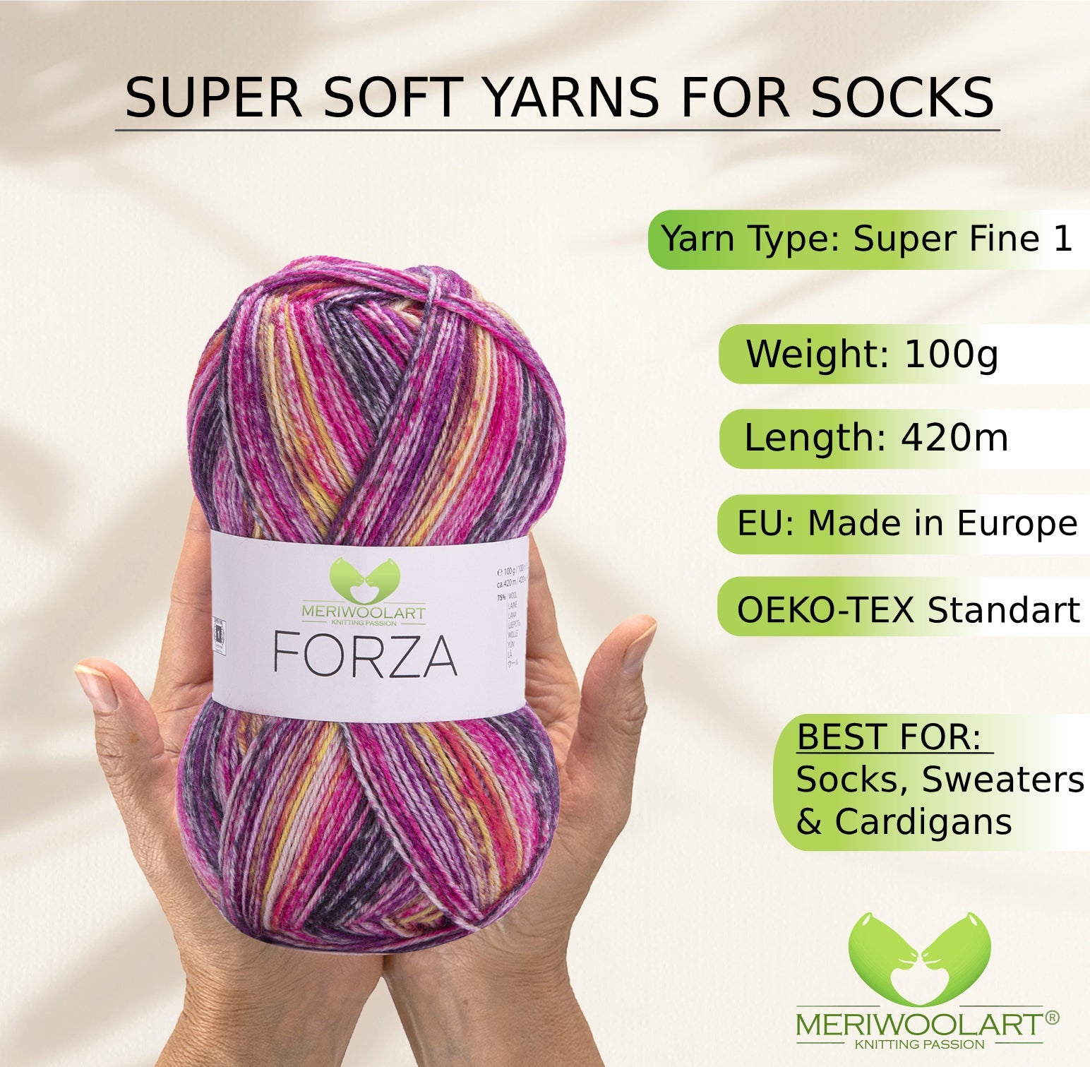 Discover MeriWoolArt® Sock Yarn 4-Ply – 100g Merino Wool Yarn for Knitting & Crocheting, 75% Virgin Wool (Superwash), 25% Polyamide, 420m – Ideal for Socks for Men & Women, Sweaters & Cardigans