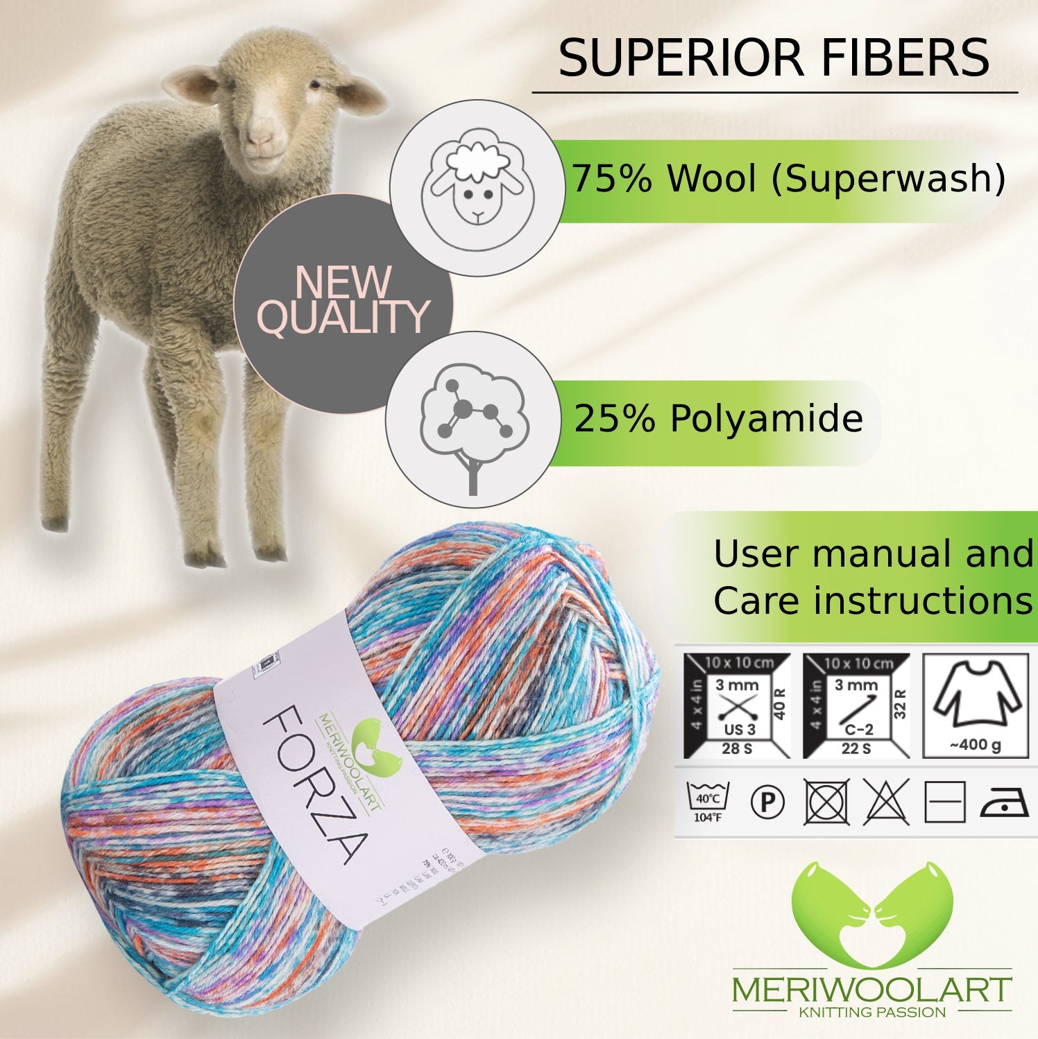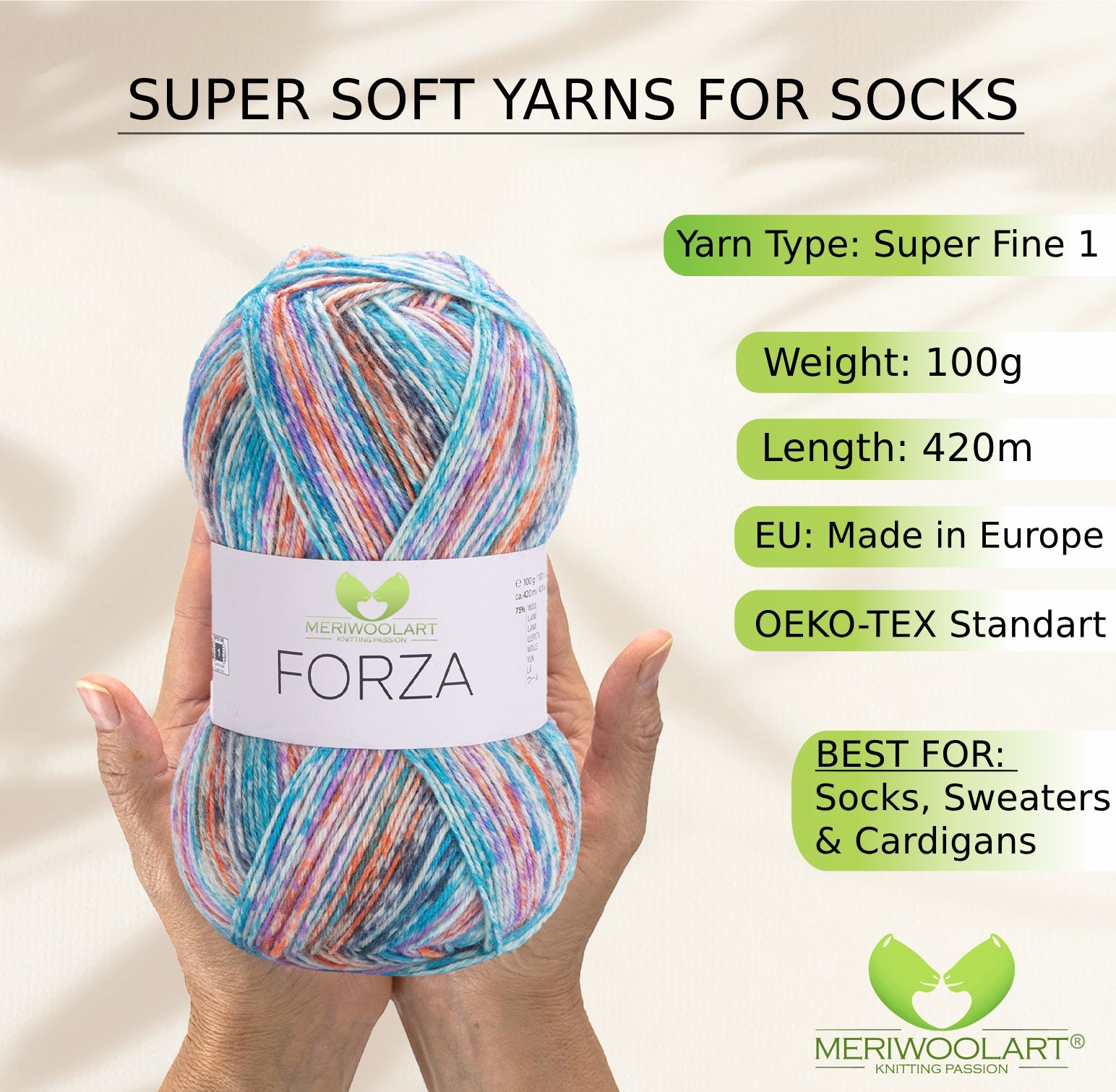 Discover MeriWoolArt® Sock Yarn 4-Ply – 100g Merino Wool Yarn for Knitting & Crocheting, 75% Virgin Wool (Superwash), 25% Polyamide, 420m – Ideal for Socks for Men & Women, Sweaters & Cardigans