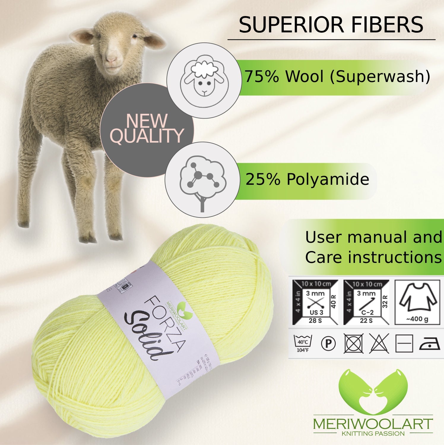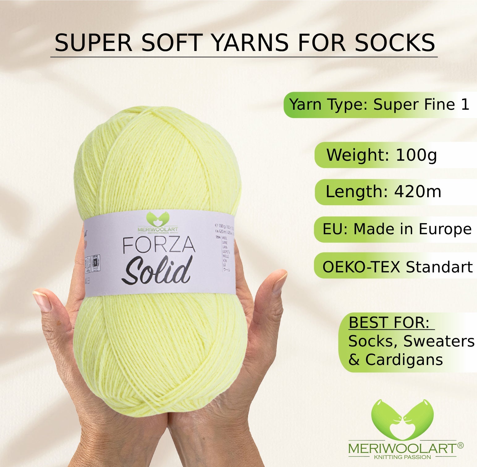 Discover MeriWoolArt® Sock Yarn 4-Ply – 100g Merino Wool Yarn for Knitting & Crocheting, 75% Virgin Wool (Superwash), 25% Polyamide, 420m – Ideal for Socks for Men & Women, Sweaters & Cardigans